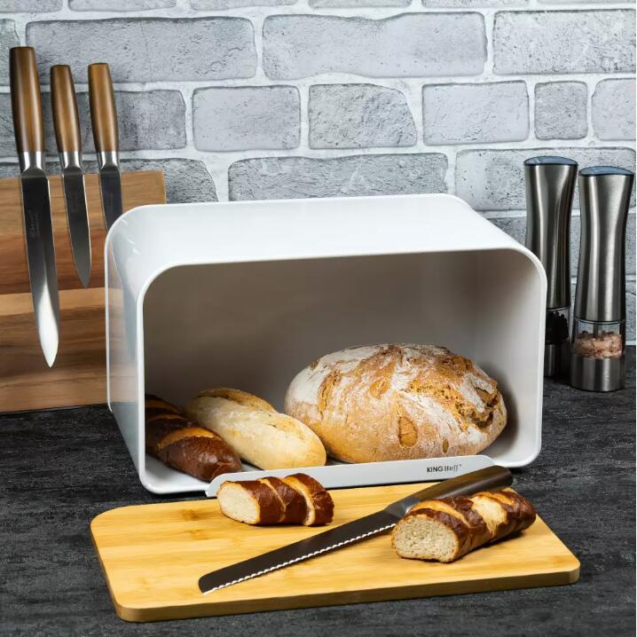 Cutie pentru paine, din oțel-bambus, alb, KingHoff
