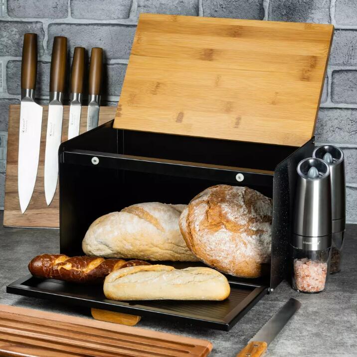 Cutie pentru paine, din oțel, negru, 35.5 x 23.5 x 21 cm, Klausberg