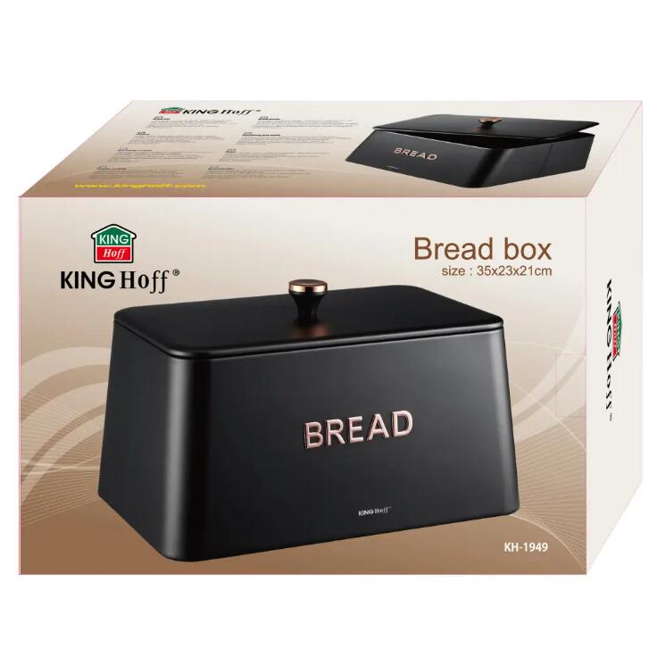 Cutia de pâine KINGHoff KH-1949 este o soluție elegantă și practică pentru depozitarea pâinii. Construcția din metal negru mat și capacul cu mâner decorativ o fac să se integreze perfect în decorul oricărei bucătării, combinând funcționalitatea cu estetica.