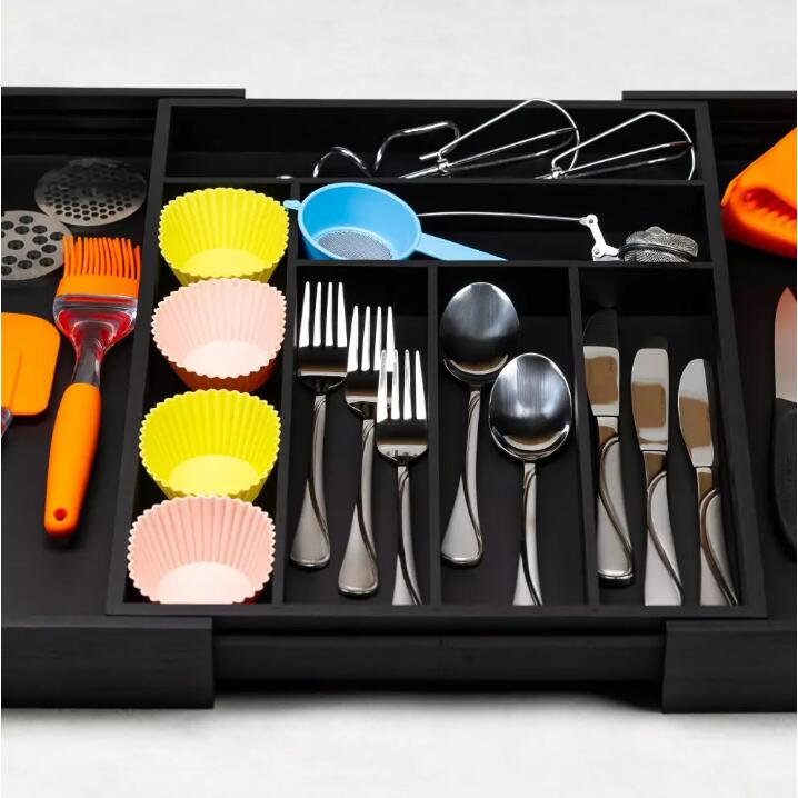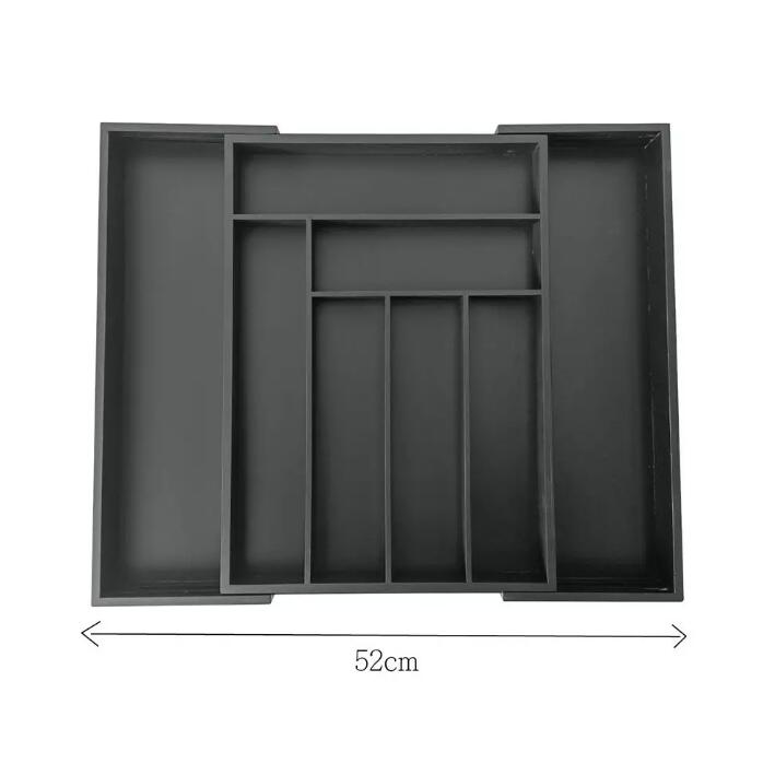 Cutie pentru tacamuri din bambus, cu 8 compartimente, pentru sertar, 52x43x5 cm, negru Kinghoff