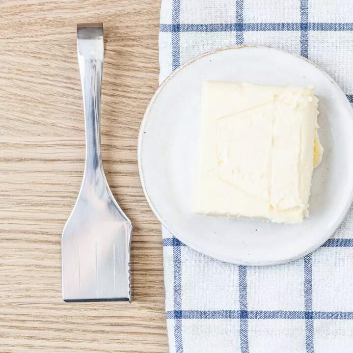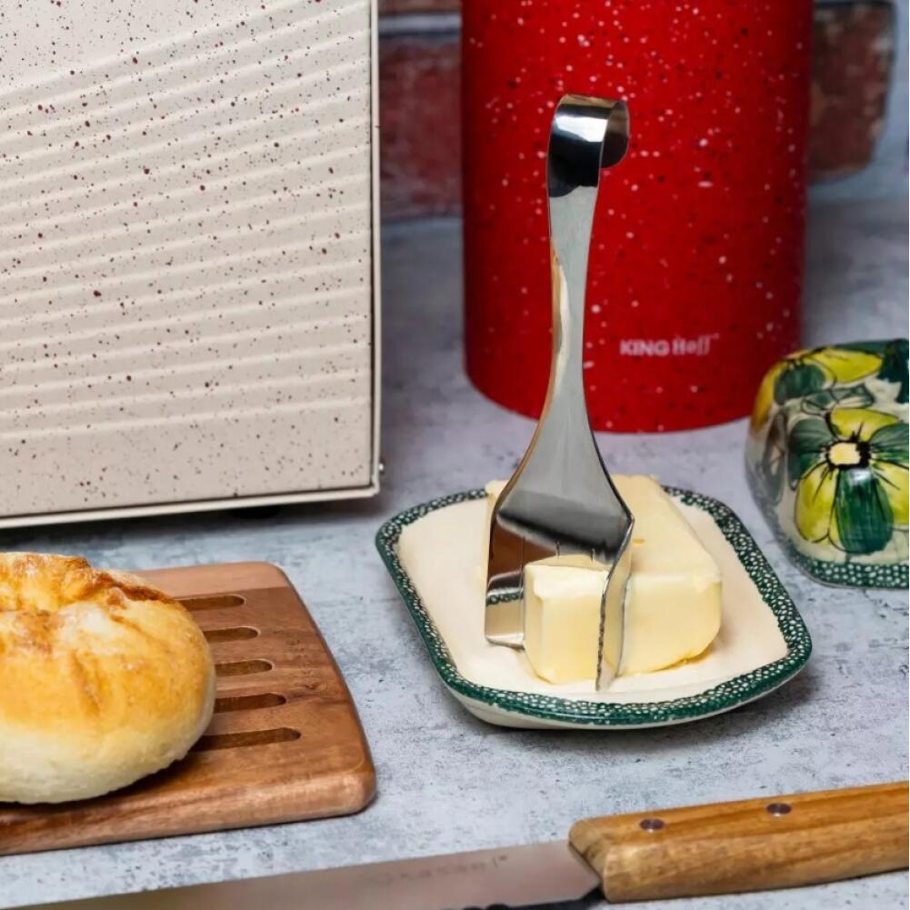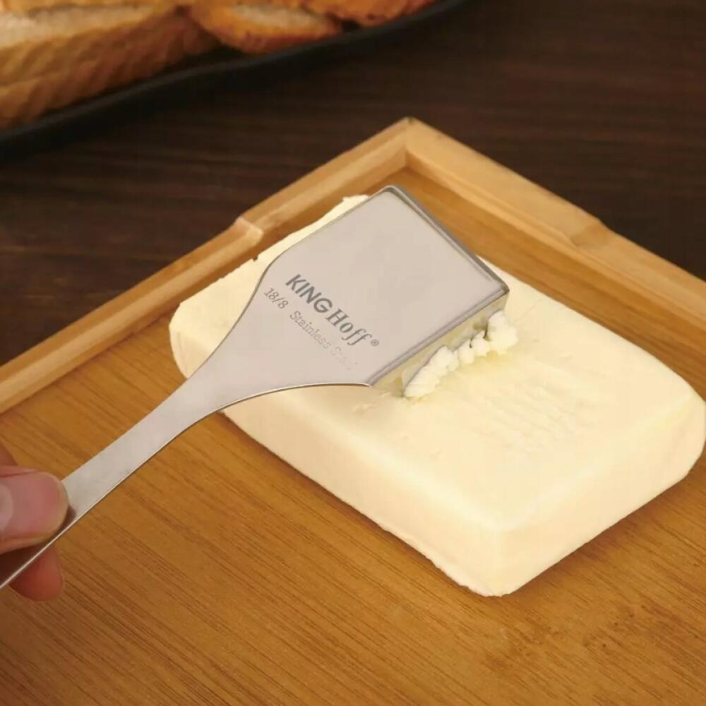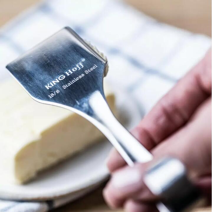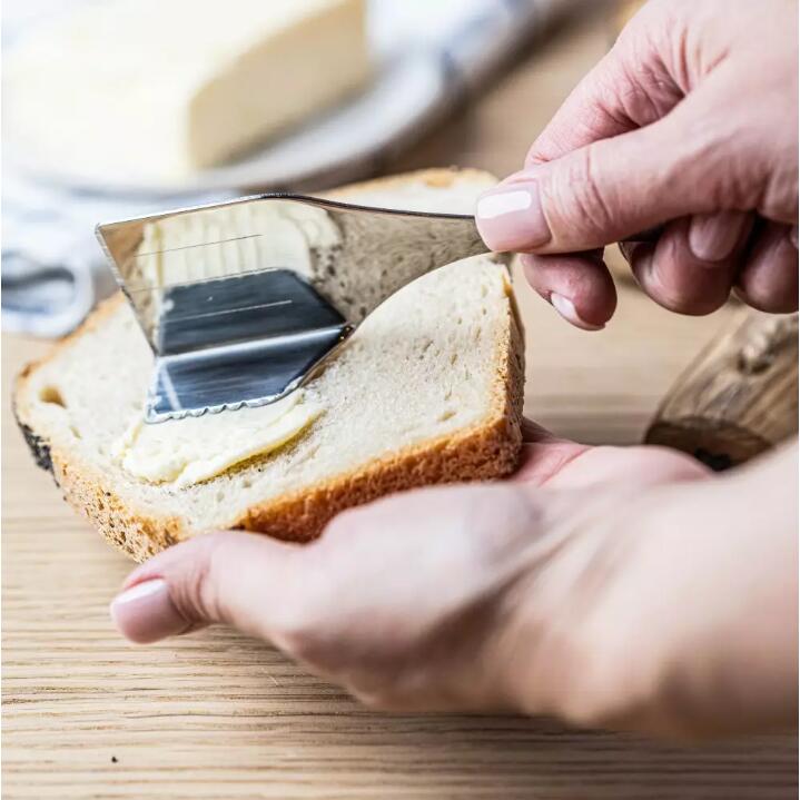 Muchia cuțitului în formă de V: Forma originală a muchiei permite tăierea ușoară a untului și împrăștierea uniformă a sandvișurilor.