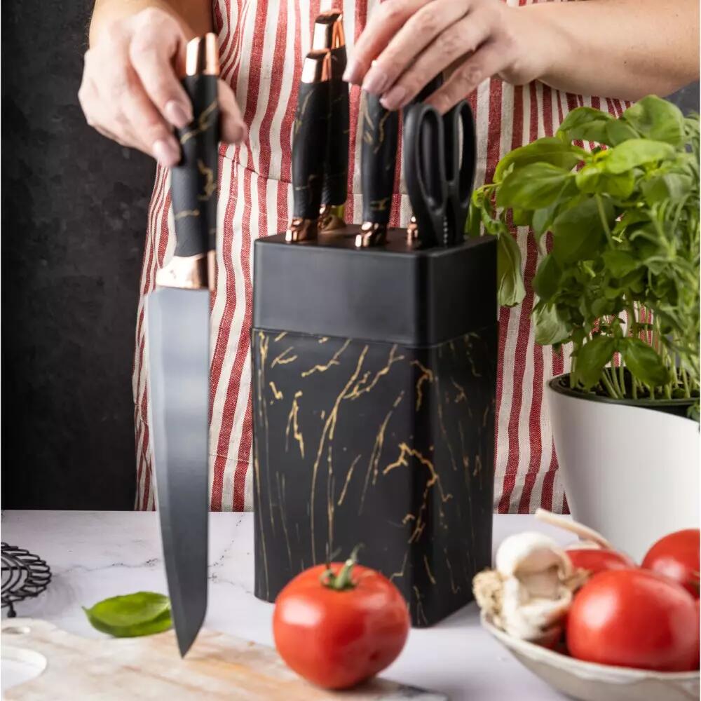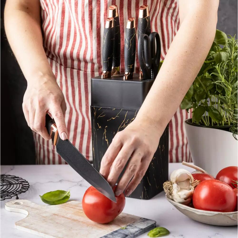- Bloc de cuțite/suport pentru o utilizare sigură și ușoară