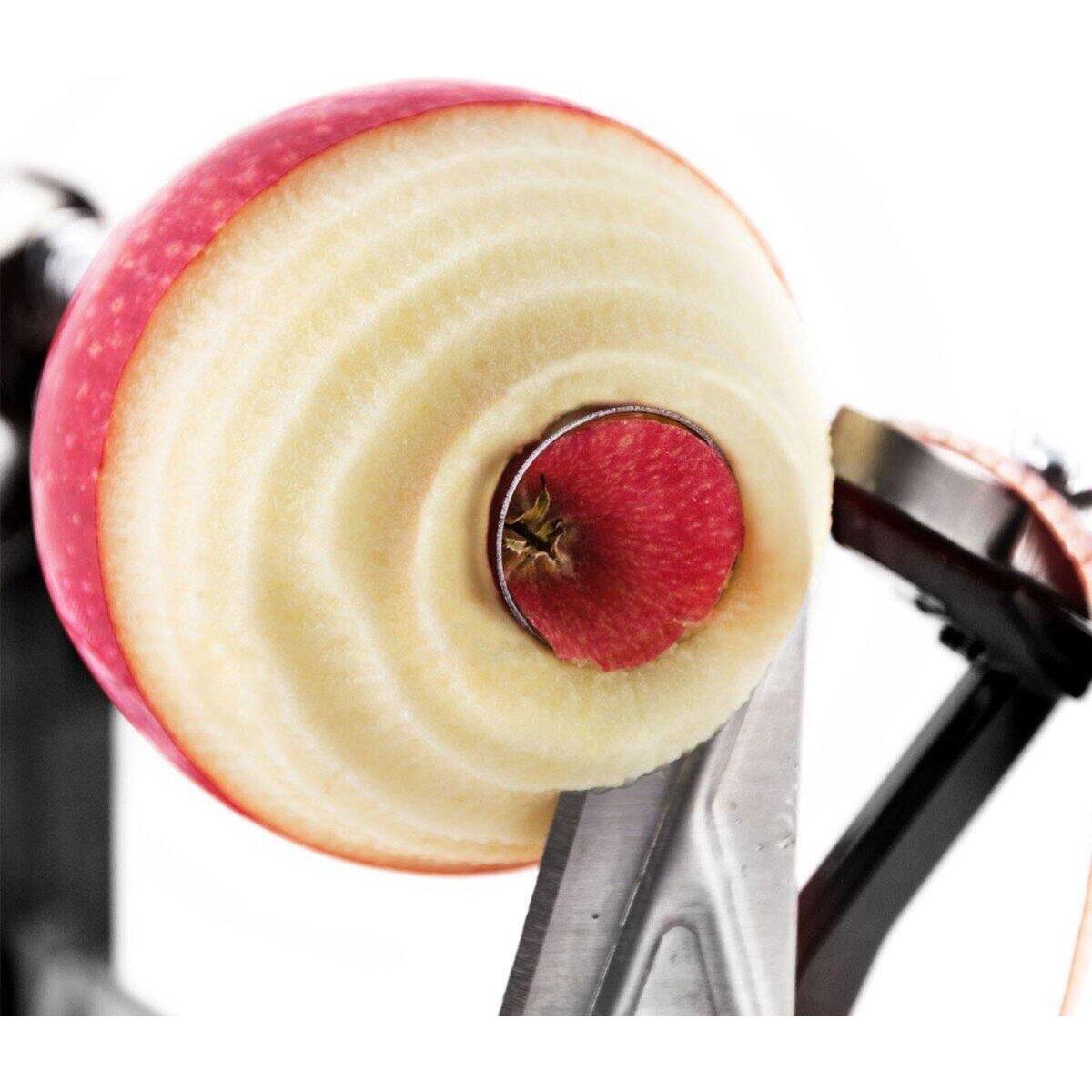 - Acest dispozitiv curăță cartofii și fructele proaspete, le taie și îndepărtează miezurile cu semințe într-o singură mișcare. Perfect și pentru legume și multe altele.