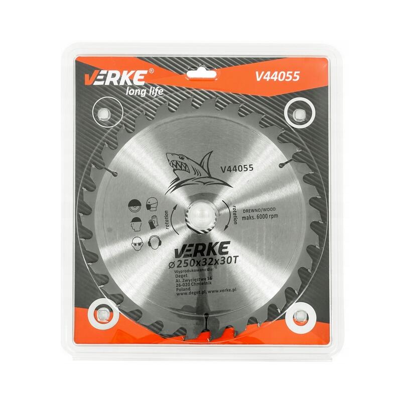 Disc vidia din carbură, pentru lemn si scandura, 250 x 32 x 30T, Verke