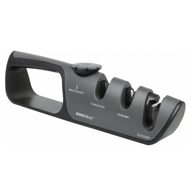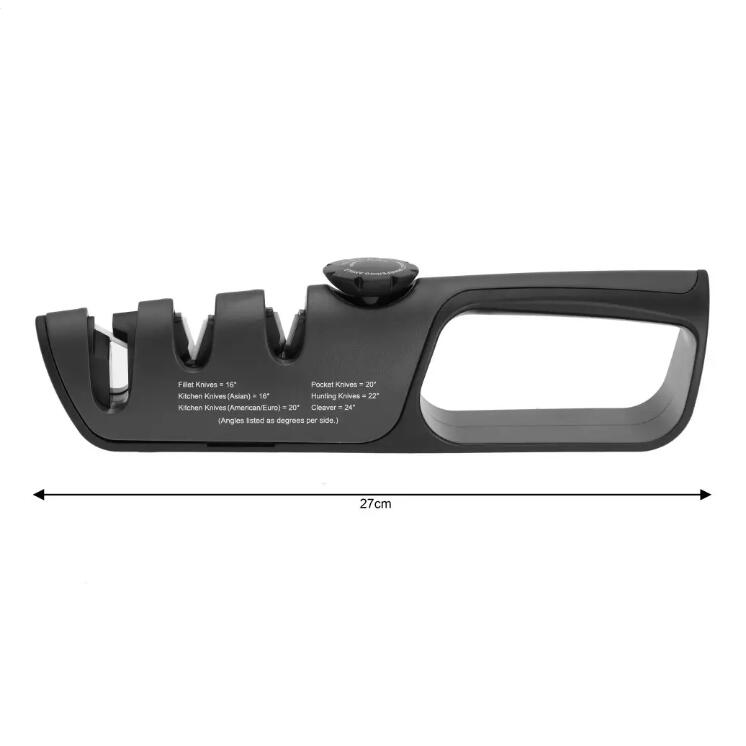 - Două fante pentru ascuțire manuală ușoară, cu o ajustare a unghiului de la 14° la 24° pe fiecare parte.