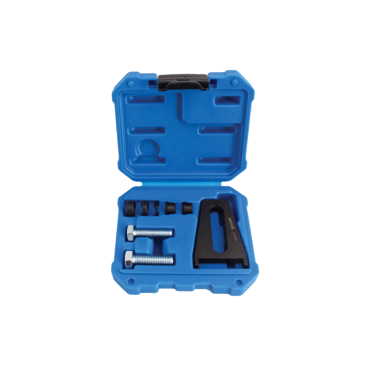 • Setul include șuruburi de montare M10 și M12 pentru montarea în orificiile blocului motor și un set de distanțiere pentru a poziționa corect unealta în raport cu inelul dințat.
