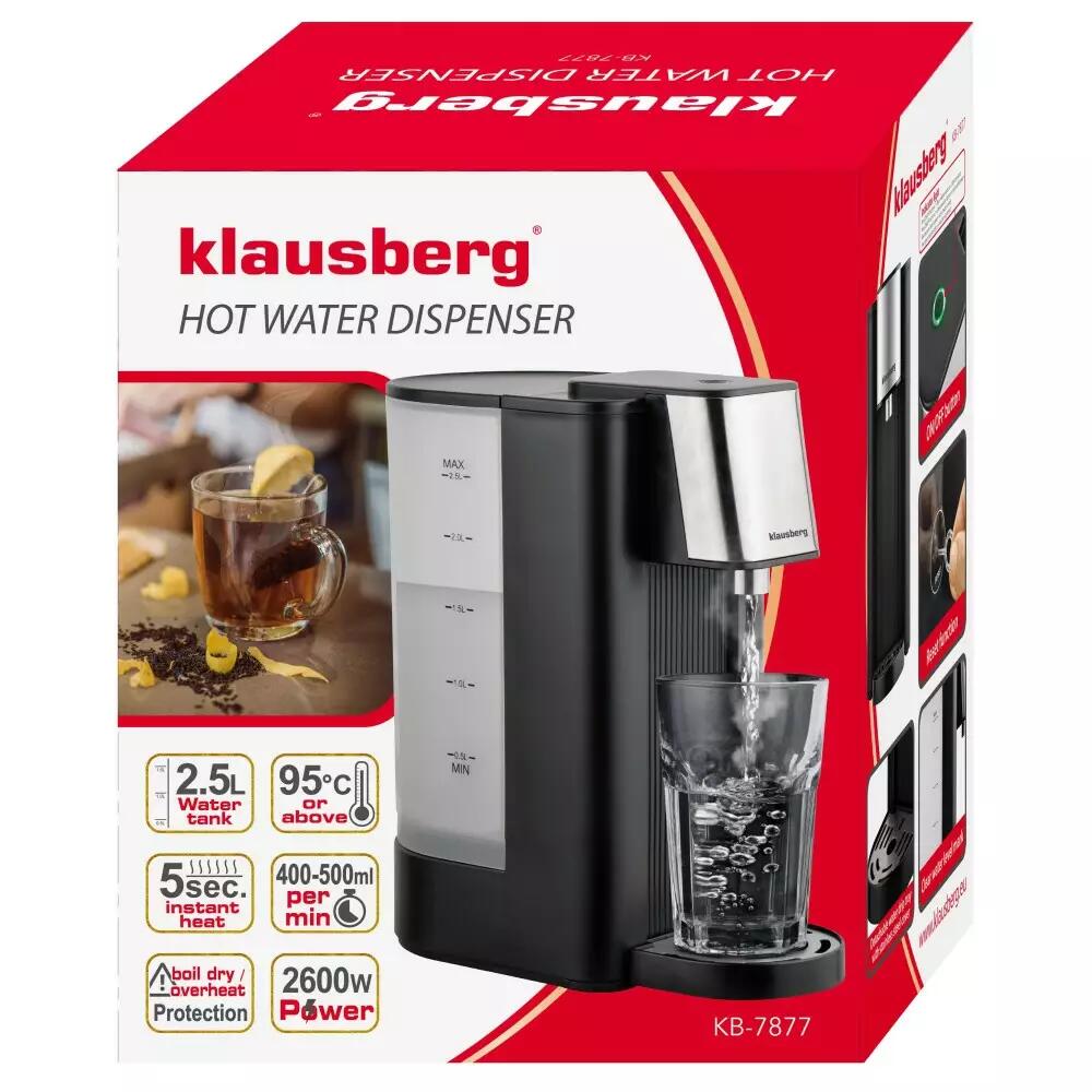 Economisiți timp, energie și spațiu cu dozatorul de apă modern KLAUSBERG KB-7877 . Gata de funcționare în doar 5 secunde , acesta distribuie apă la o temperatură de peste 95°C - ideal pentru cafea, ceai, supe, cereale și lapte praf.