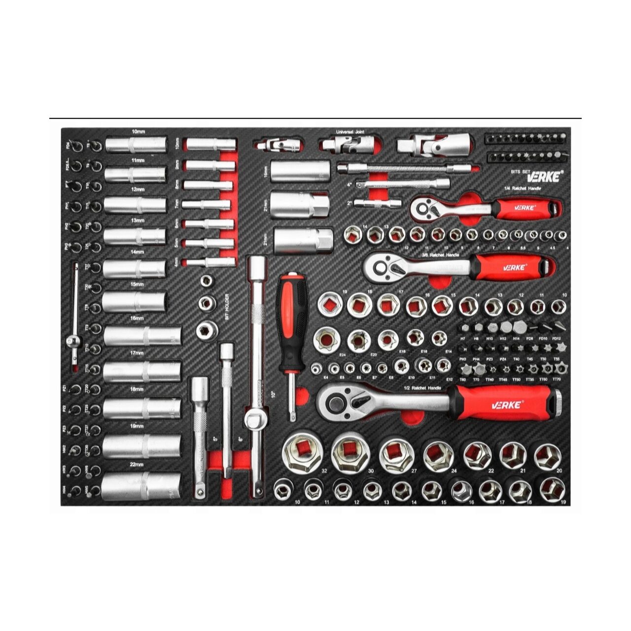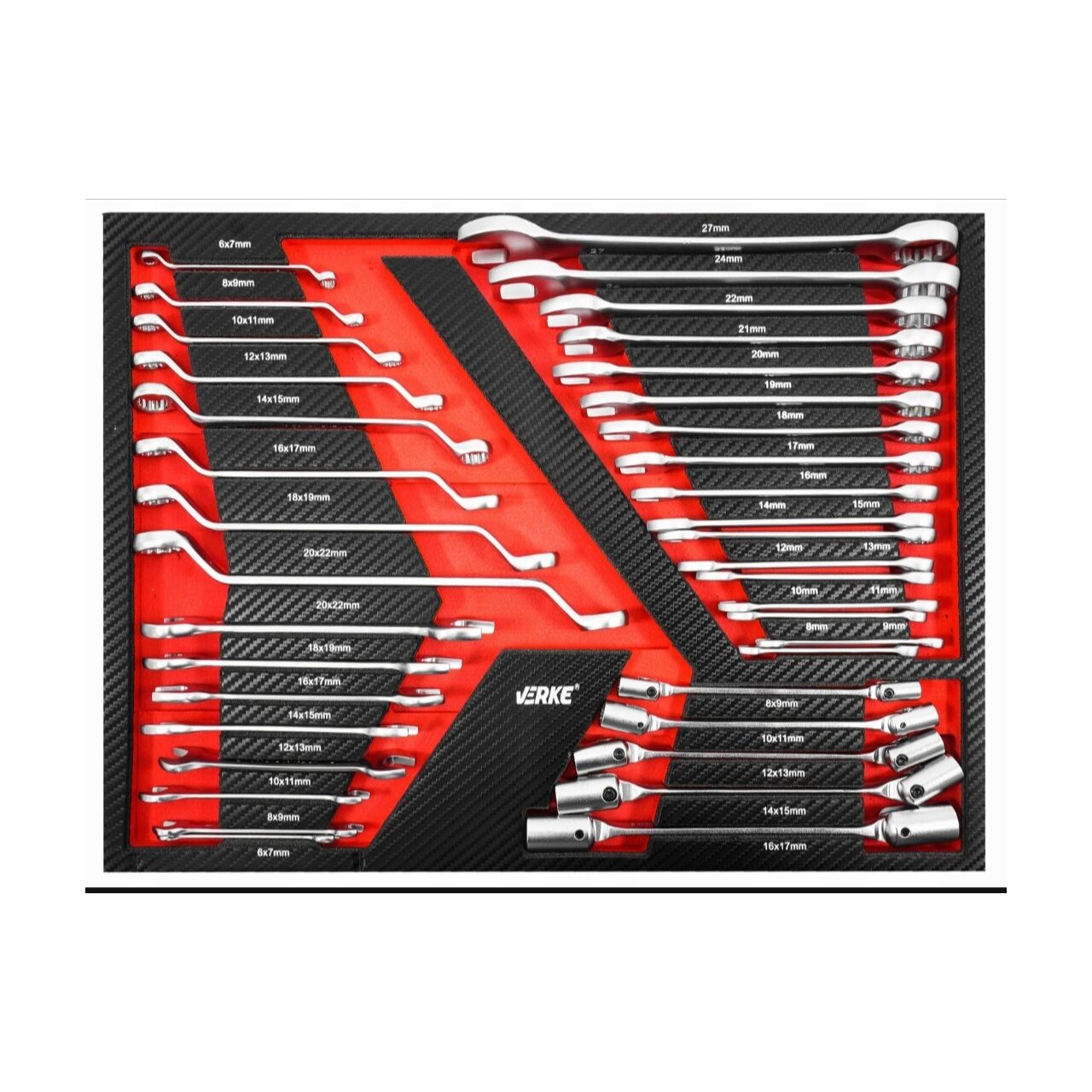 - Chei 1/2" (17 bucăți): 10;11;12;13;14;15;16;17;18;19;20;21;22;24;27;30;32; mm