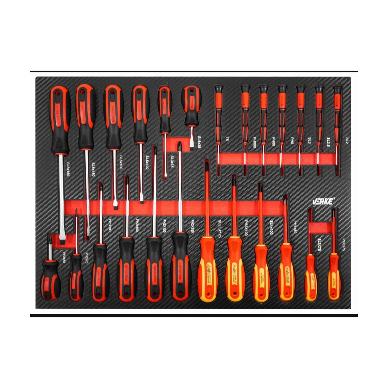 - Șurubelnițe (12 bucăți): SL6*38 mm; 3*75mm; 5*100mm; 6*100mm; 6*150mm;8*150mm | PH2 *38mm; PH0*75mm;PH1*80mm; PH2*100mm;PH2*150mm;PH3*150mm