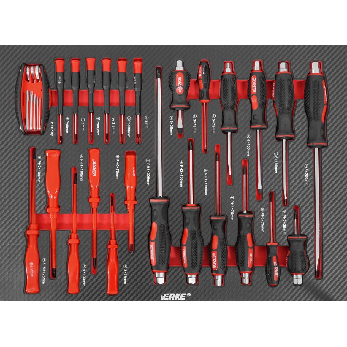 6 șurubelnițe roșii izolate (-) 3*75, 4*100, 5.5*125, (+) PH0*75, PH1*100, PH2*100,
