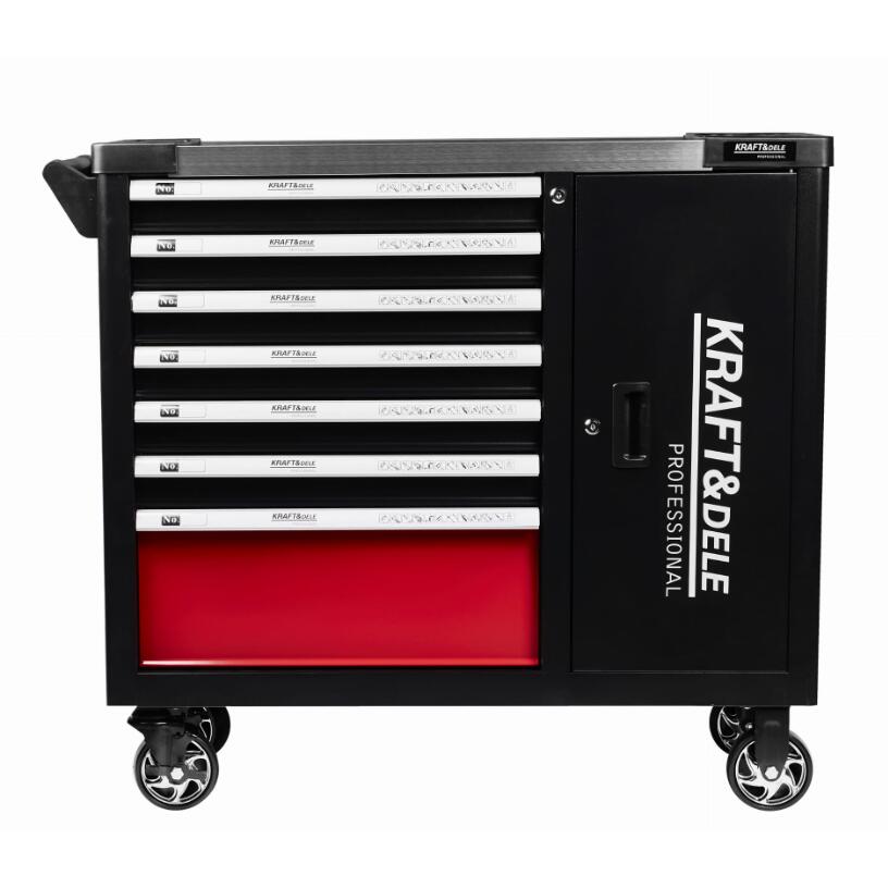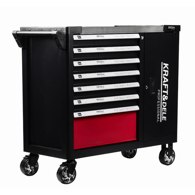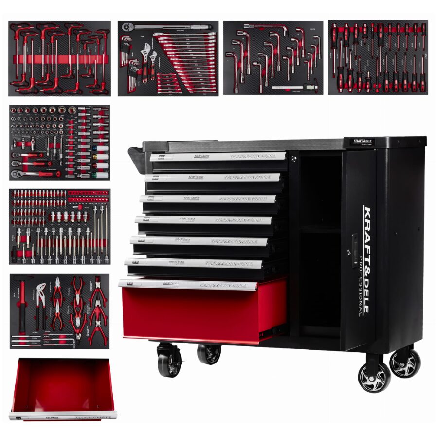 Dulap scule complet, pe roti, 7 sertare, 299 piese, Kraft