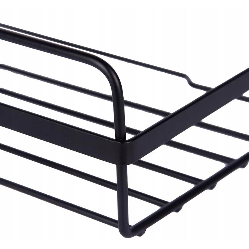 Raft negru pentru baie și bucătărie în stil mansardă. Autoadeziv, montat pe o bandă cu două fețe foarte rezistentă, care nu dăunează plăcilor. Arata bine pe perete. Nu necesită găurire.