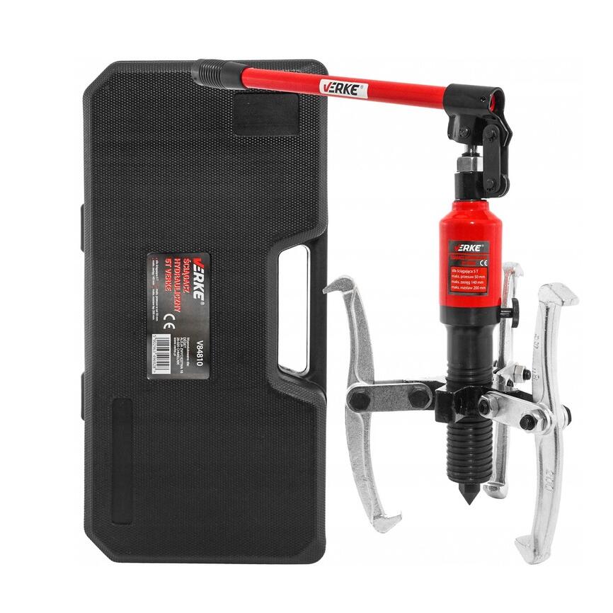 Extractorul hidraulic Verke de 5 tone este instrumentul ideal pentru demontarea rulmenților, angrenajelor, butucilor, bucșilor și a altor componente care sunt bine fixate pe arbore. Datorită designului său hidraulic, oferă o forță semnificativă de tragere. Spre deosebire de extractoarele filetate, nu există nicio forță de torsiune care ar putea cauza alunecarea. Cilindrul hidraulic de înaltă calitate înseamnă că nu este necesară o forță mare pentru funcționare și puterea este transferată treptat și fără efort. Manopera precisă și materialele solide de înaltă calitate garantează o durată lungă de viață a sculei și o funcționare fără defecțiuni. Posibilitate de tragere cu 2 sau 3 brate. Ideal pentru orice atelier mecanic, strung, lăcătuș, service și pentru întreținerea motoarelor electrice, angrenajelor, pompelor de apă etc.