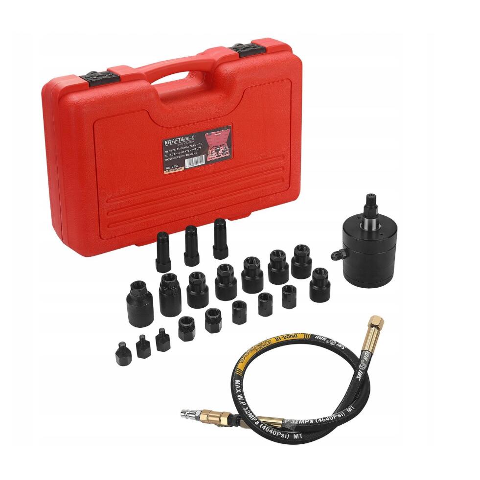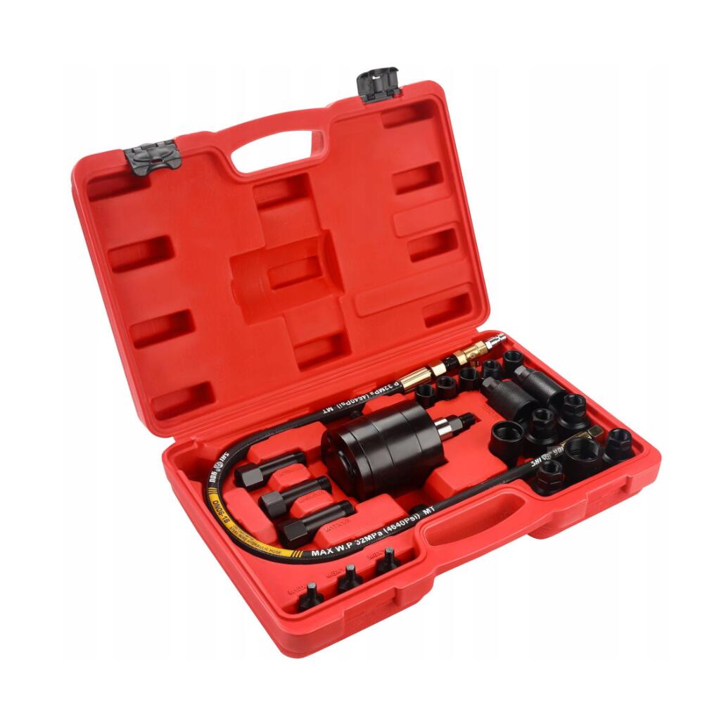 Folosind un mecanism de impact și aer comprimat , această unealtă profesională permite o îndepărtare rapidă și sigură, cu un risc minim de deteriorare atât a chiulasei, cât și a injectoarelor în sine.