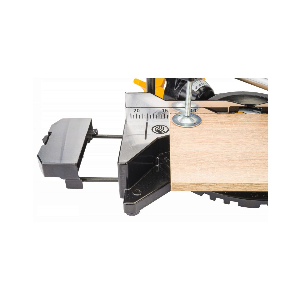 Clema verticală reglabilă vă permite să fixați materialul în așa fel încât să nu se miște în timpul tăierii cu o alimentare. Dispozitivul are două locuri de montare, astfel încât să puteți monta clema pe partea stângă sau dreaptă a dispozitivului.