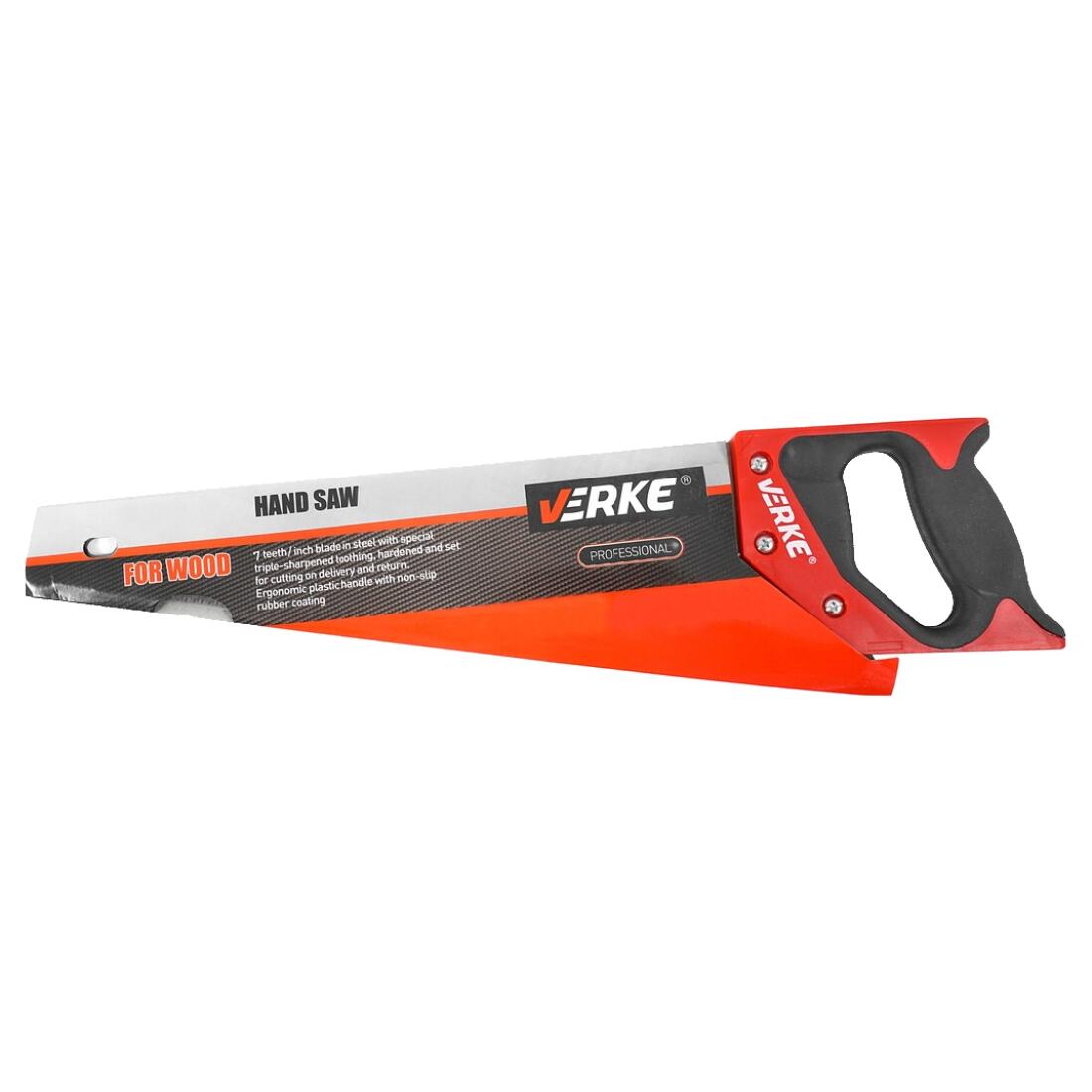 Mânerul ergonomic, din două componente, este atașat la lama fierăstrăului cu trei șuruburi.