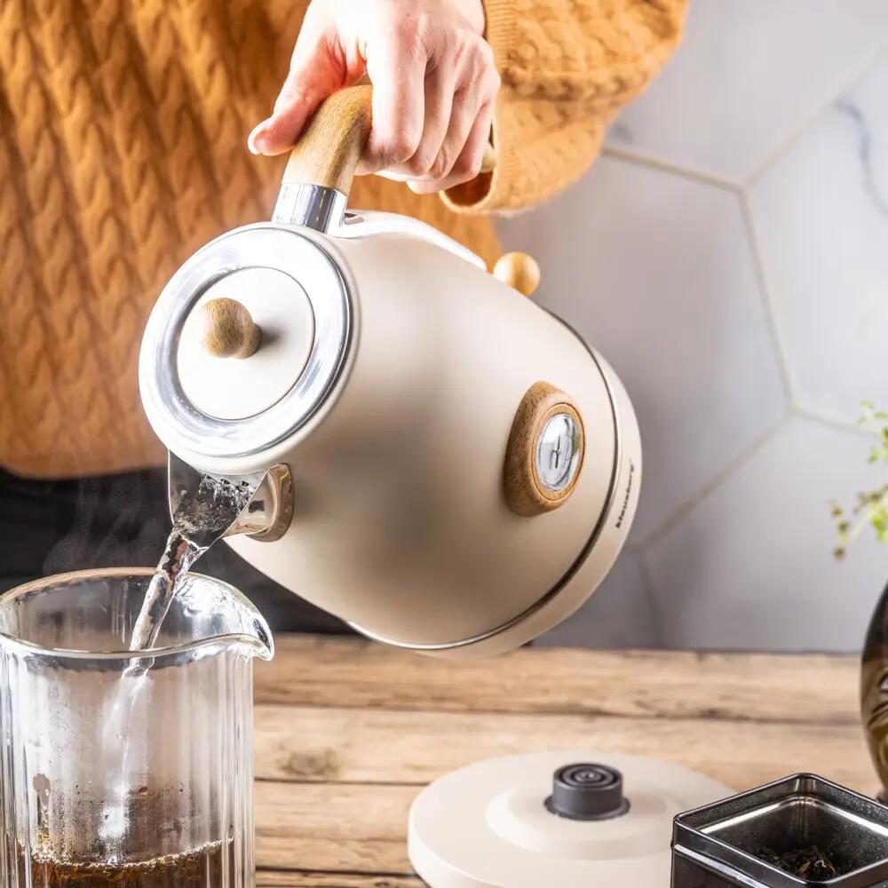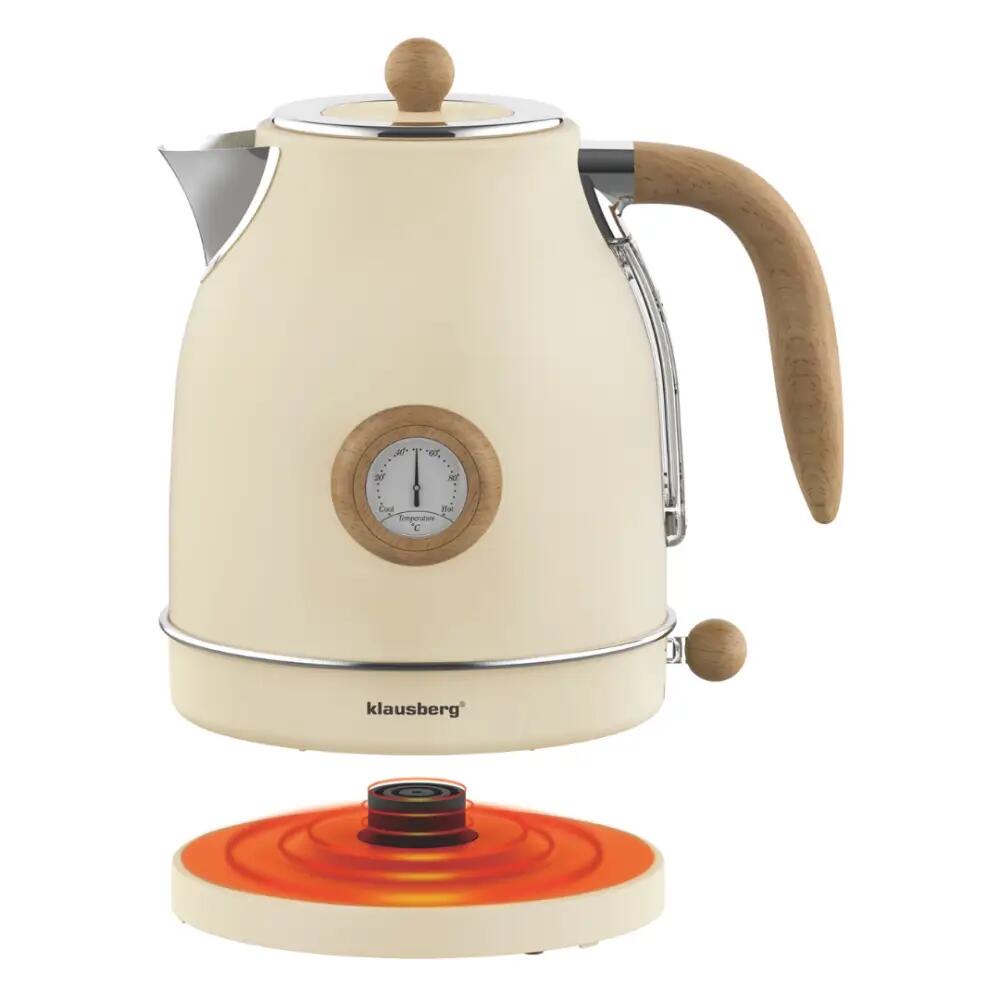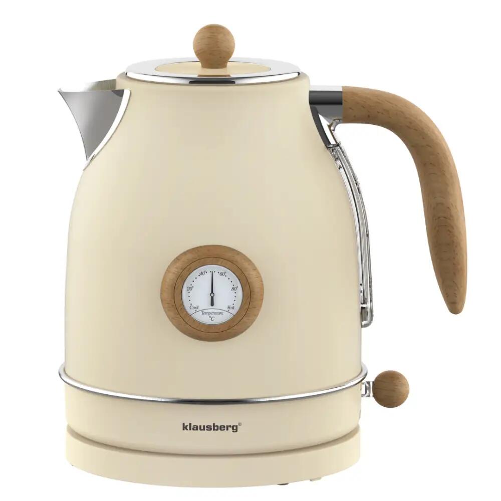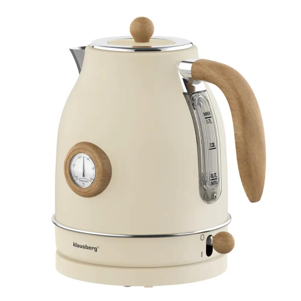 Fierbator retro crem din otel inoxidabil, electric cu termometru, 1.7 litri, Klausberg