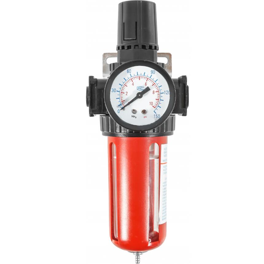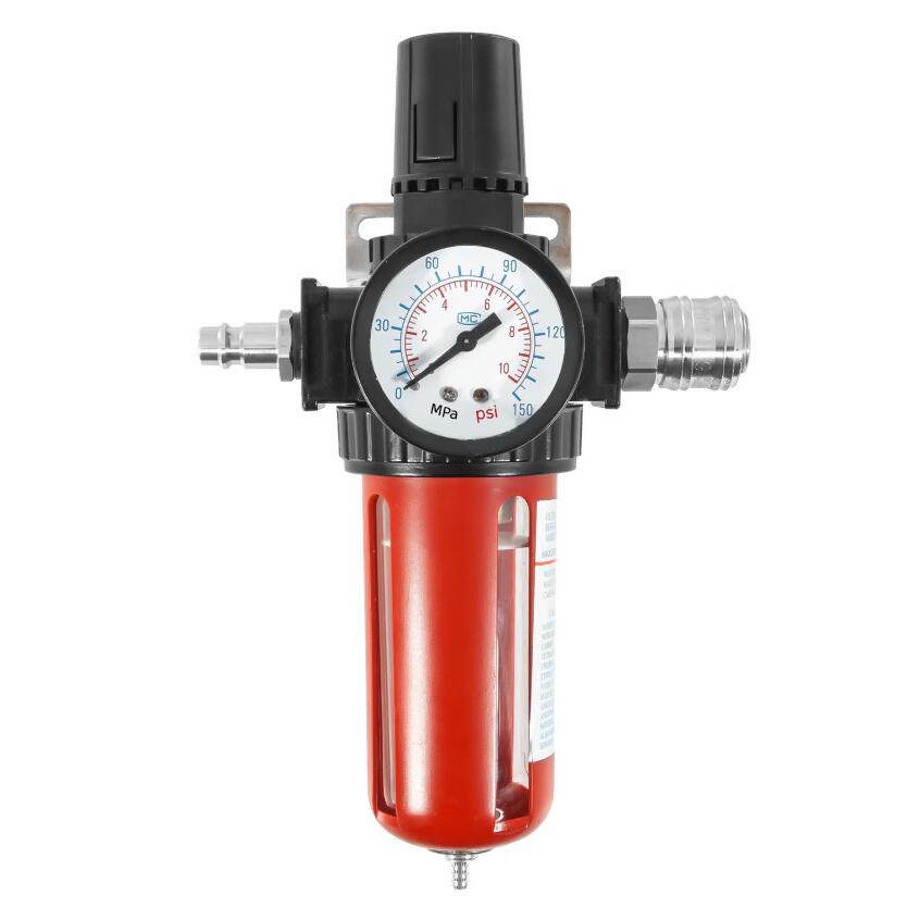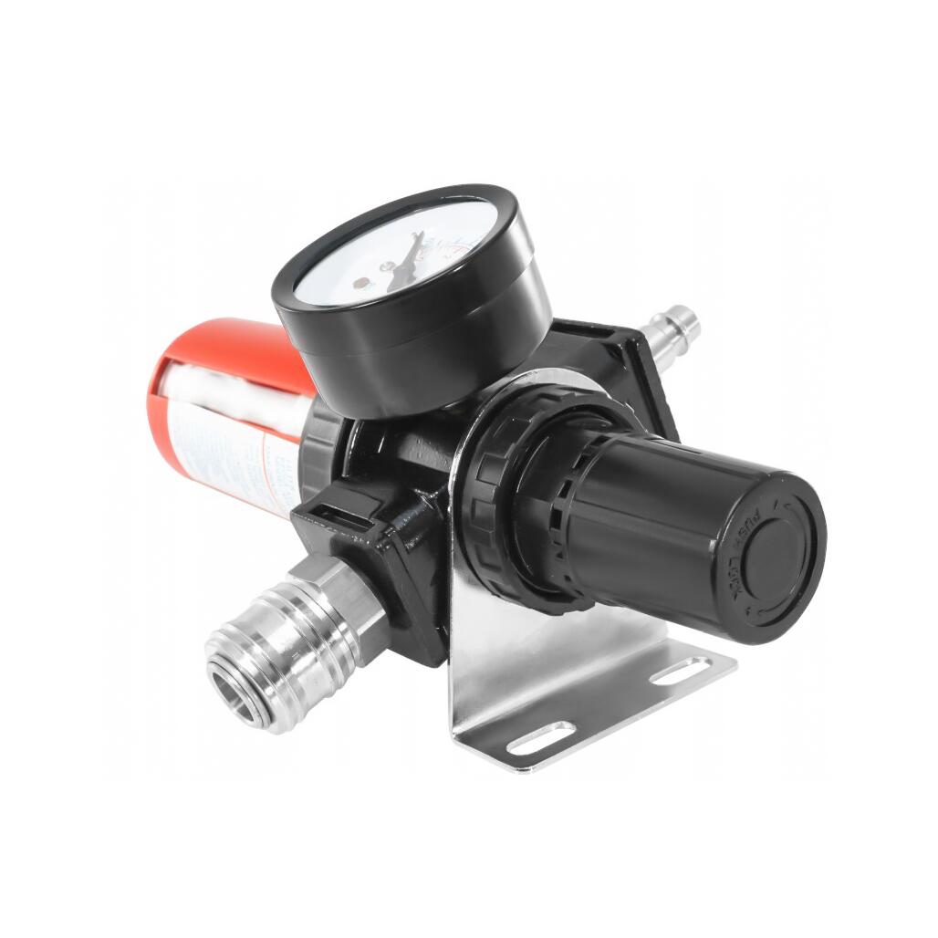 Designul permite montarea dispozitivului pe un perete. Este echipat cu un bloc complet de preparare a aerului. Materialul din care este fabricat reductorul permite utilizarea pe termen lung a produsului. Reduce și menține presiunea de lucru constantă, care este necesară pentru funcționarea corectă a de ex. pistoale de vopsea, chei de impact. Filtrează, deshidratează, dezolică și purifică aerul de toți poluanții. Curăță aerul comprimat de ulei, condens de apă și particule solide.