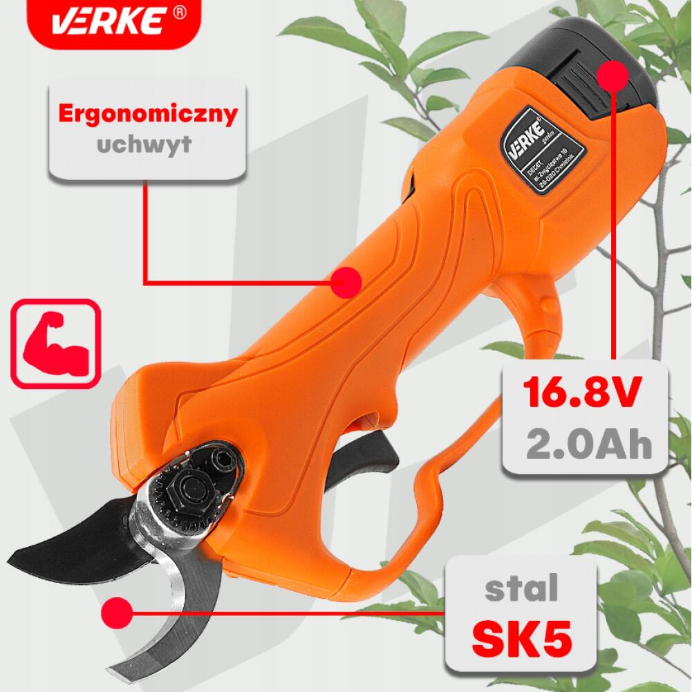 Foarfeca fără fir Verke Garden este un instrument ideal pentru îngrijirea copacilor, paturi de flori și arbuști. Tăiați cu ușurință ramuri de până la 22 mm în diametru. Lama de oțel călit de 65 Mn de înaltă calitate vă permite să faceți o tăietură îngrijită, care este sănătoasă pentru orice plantă care trebuie tăiată.
