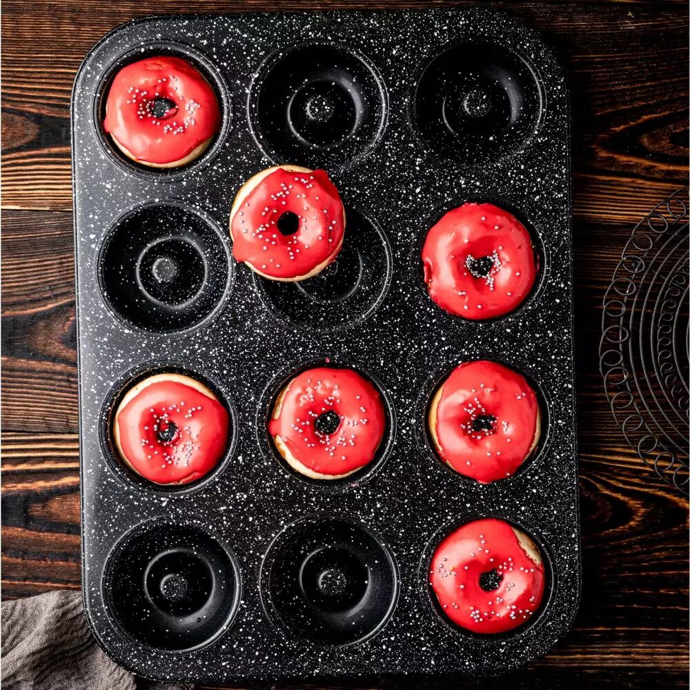 Forma de copt, pentru coacerea a 6 briose, cu invelis antiaderent, neagra, 26,5x17,5 cm, Klausberg
