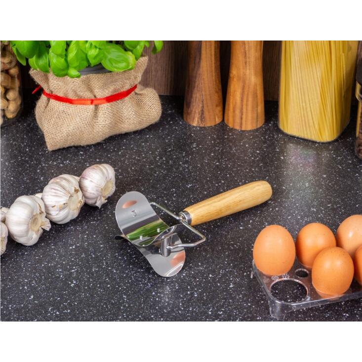 - Fabricat din otel inoxidabil, cu maner din lemn, ergonomic