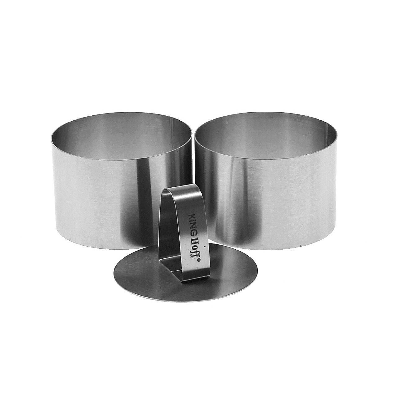 Un set de forme pentru formarea, tăierea și decorarea vaselor și prăjiturii. Setul include 2 inele si un piston pentru presarea alimentelor.