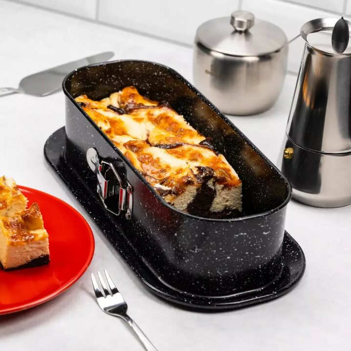 Forma are cleme detașabile care vă permit să o deschideți și să scoateți fundul, ceea ce va ușura mult lucrurile atunci când scoateți produsul copt.
