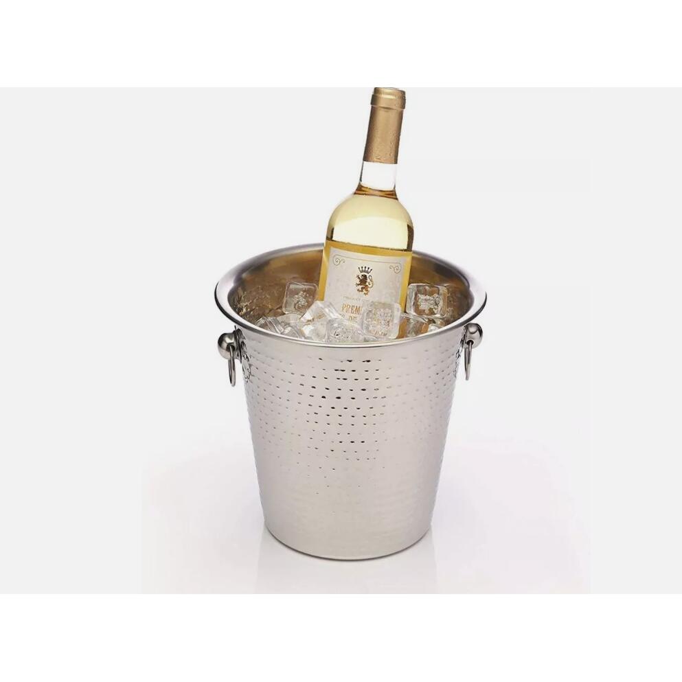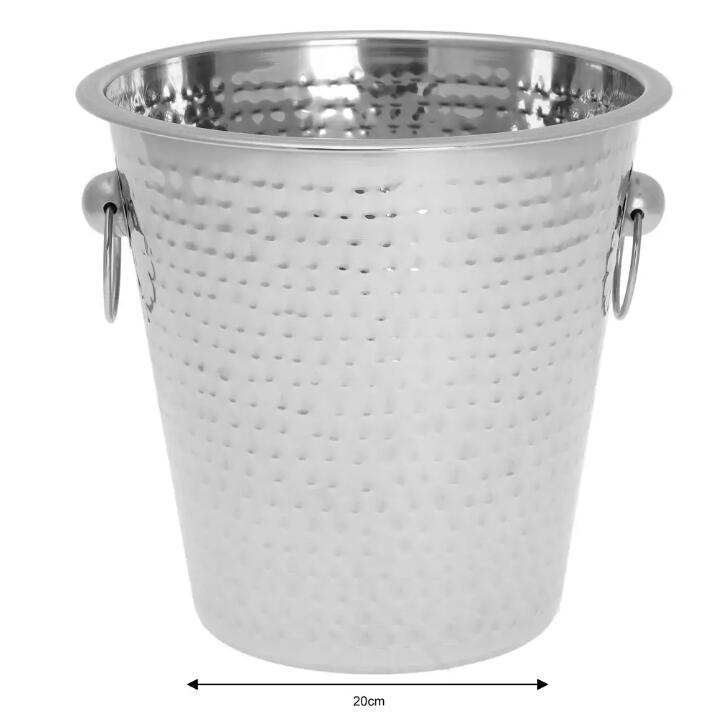 O găleată pentru gheață din oțel, de neînlocuit pentru răcirea băuturilor în zilele caniculare. Umpluta cu gheață, menține perfect o temperatură scăzută. Datorită suprafeței sale cu nervuri, găleata pentru gheață arată întotdeauna foarte elegant și arată frumos pe orice masă, măsuță de cafea sau bar.