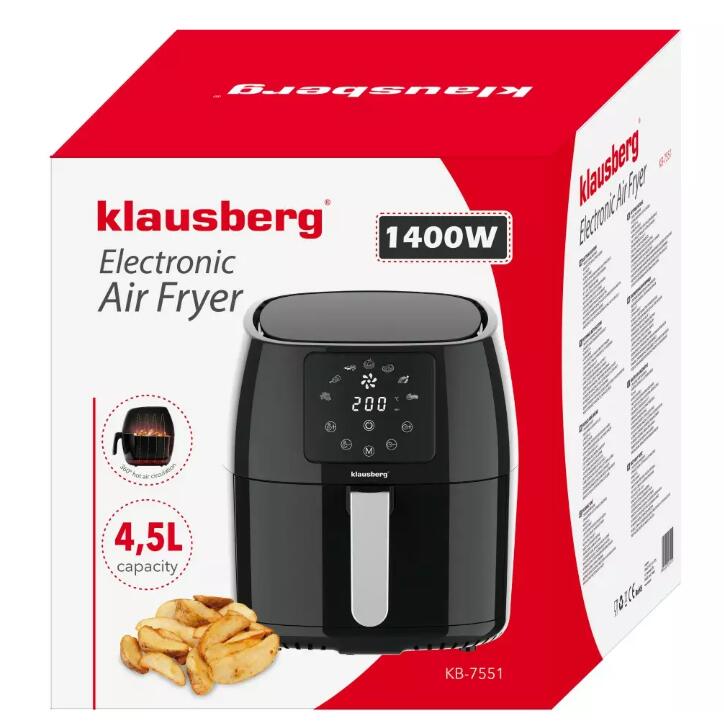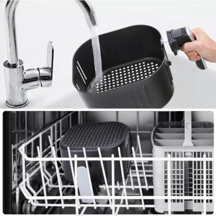 Friteuza are 7 programe inteligente încorporate, inclusiv reîncălzire, cartofi prăjiți, friptură, creveți, pulpe de pui, prăjitură, pește, coaste.