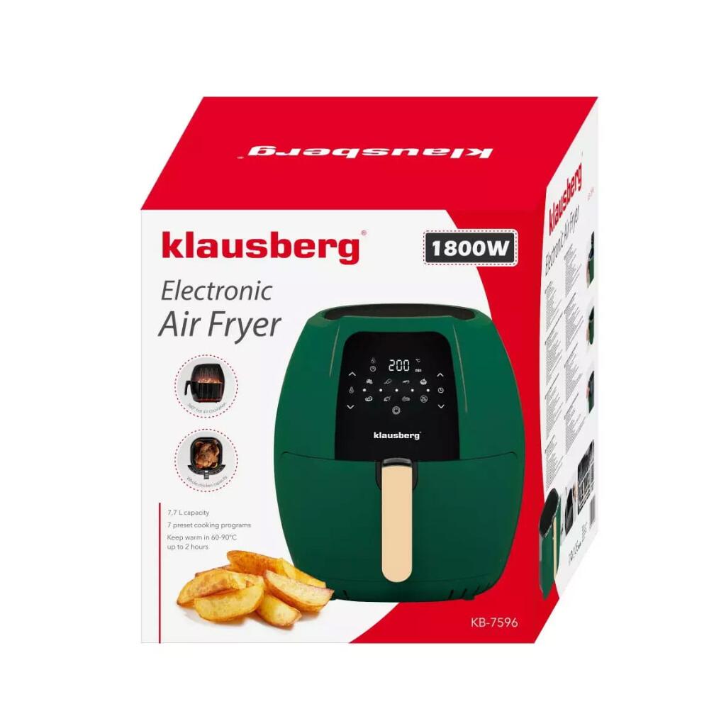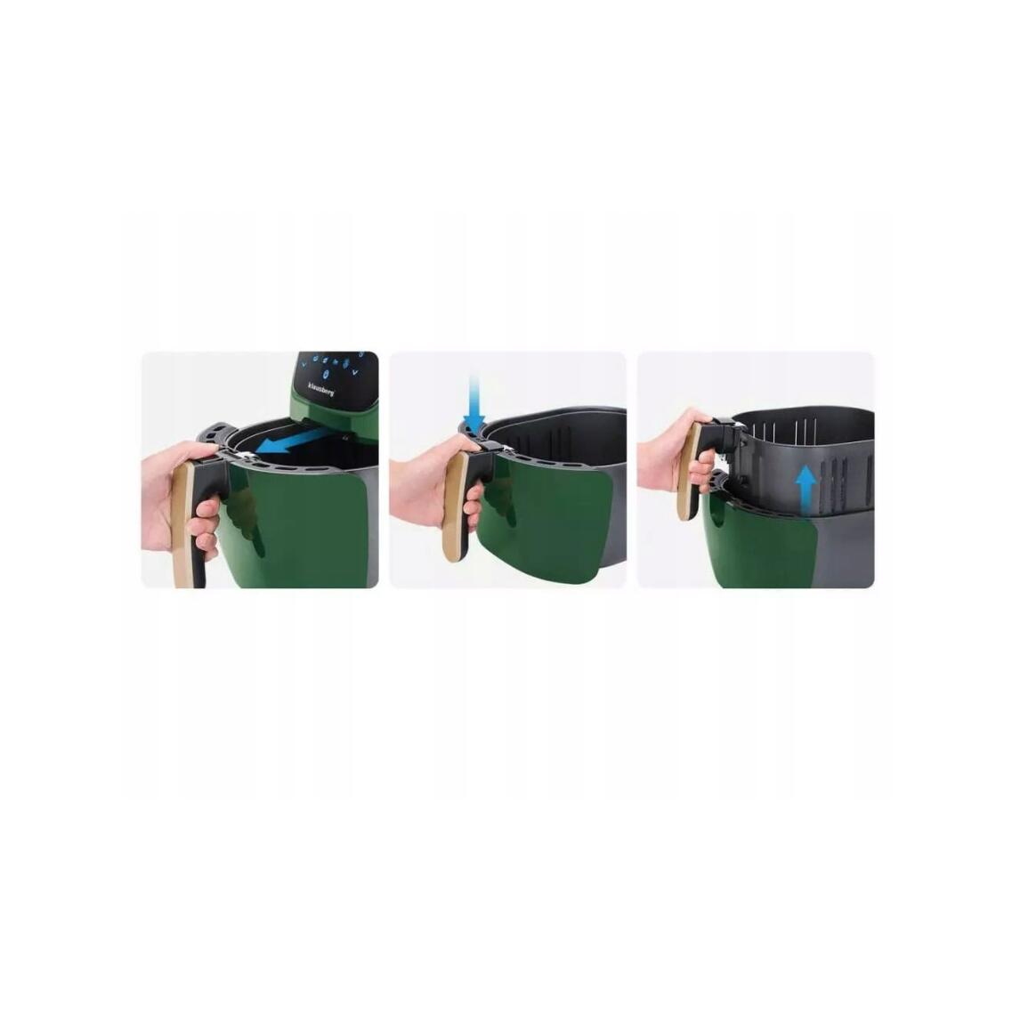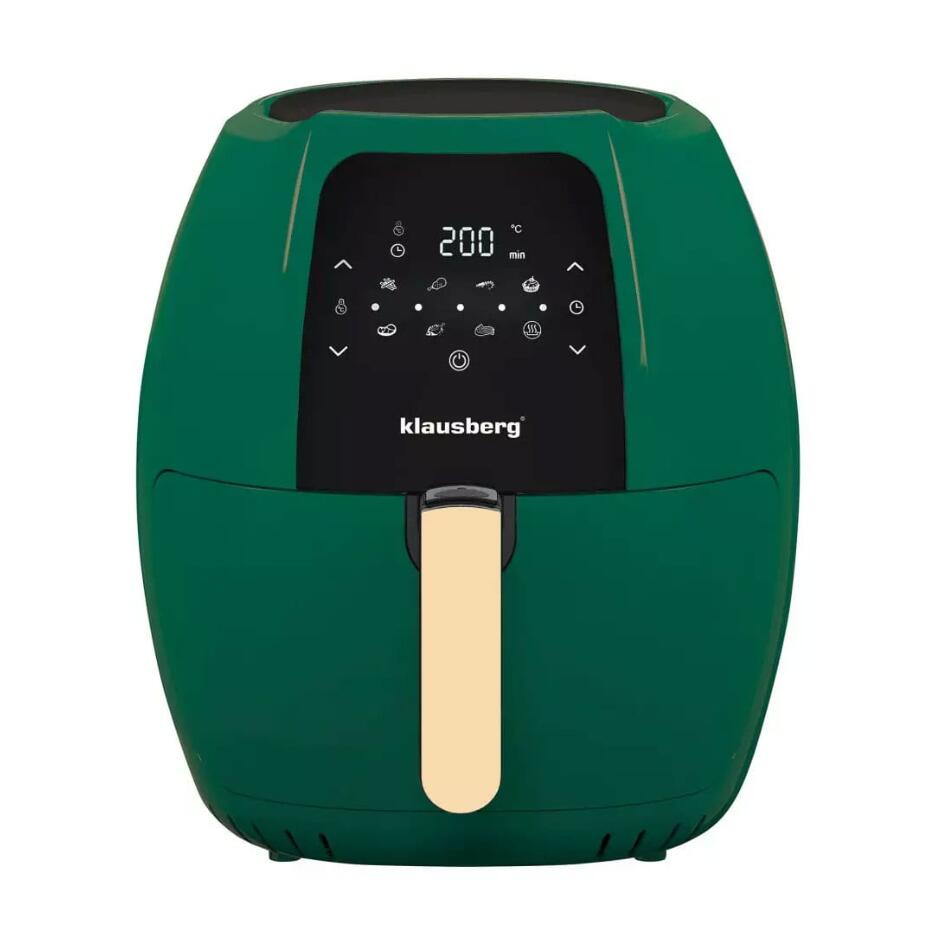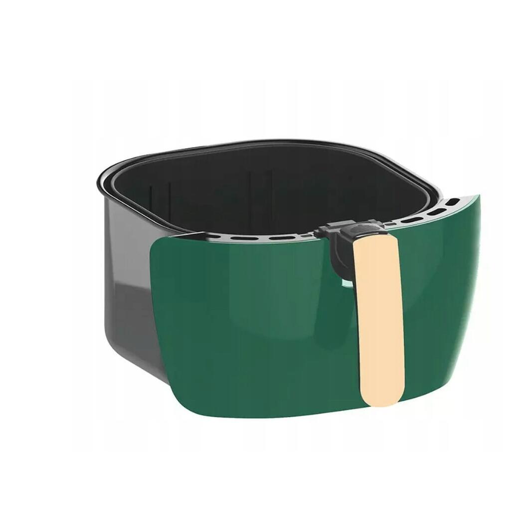 Friteuza cu aer este un dispozitiv multifunctional, compact, care va permite sa coaceti, prajiti, incalziti, gratar si dezghetati. Friteuza foloseste o tehnologie unica de circulatie a aerului cald, astfel incat nu este nevoie de ulei pentru prepararea alimentelor. Folosește un curent de aer fierbinte învolburat, care asigură că mâncarea este încălzită uniform mai întâi, iar apoi la grătar - până când se obține efectul dorit sub formă, de exemplu, de piele crocantă de pui. Poate fi incalzit, copt, prajit si gratar, deci este un aparat de bucatarie universal care ajuta la pregatirea zilnica a meselor sanatoase si dietetice. Carcasa dispozitivului este realizată din plastic rezistent într-o culoare verde elegantă. Friteuza este echipată cu o inserție antiaderentă pentru prăjit care vă permite să pregătiți o varietate de feluri de mâncare. Puteți găti un pui întreg în aparat. Vasul poate fi spalat in masina de spalat vase. Panoul de control are un buton de reglare a temperaturii în intervalul de la 80 la 200 ° C și un buton de cronometru care vă permite să setați timpul de lucru în intervalul de la 0 la 60 de minute. Elementul de încălzire de 1800 W vă permite să atingeți rapid temperatura necesară, iar termostatul o va menține la nivelul setat.