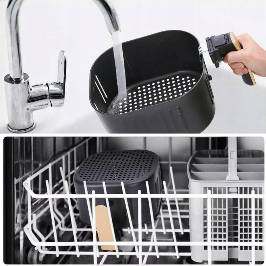 Capacitatea de 7,7 l vă permite să prăjiți un pui întreg,