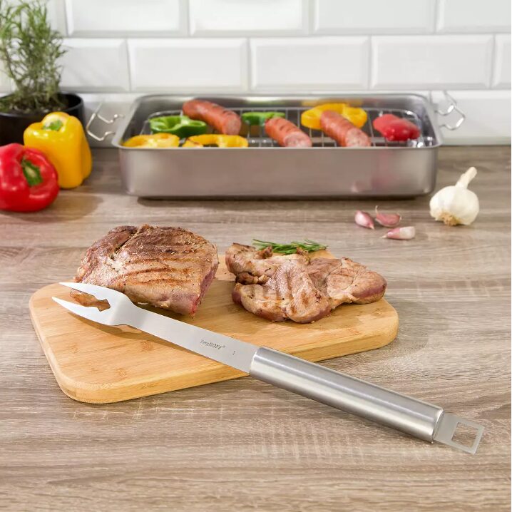 O furculiță pentru grătar este un element esențial pentru fiecare grătar. Fabricat din inox de înaltă calitate, este rezistent la coroziune și deteriorare.