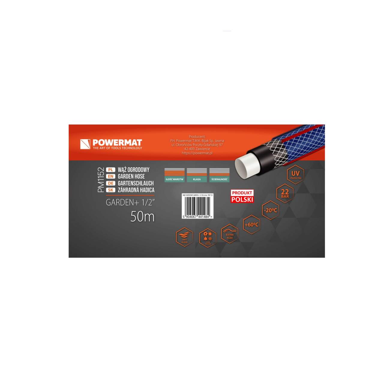 Furtunul este realizat dintr-un material exterior PVC anti-UV de foarte buna calitate, o impletitura din fibre sintetice, un strat exterior flexibil din PVC si un strat interior alb coextrudat.