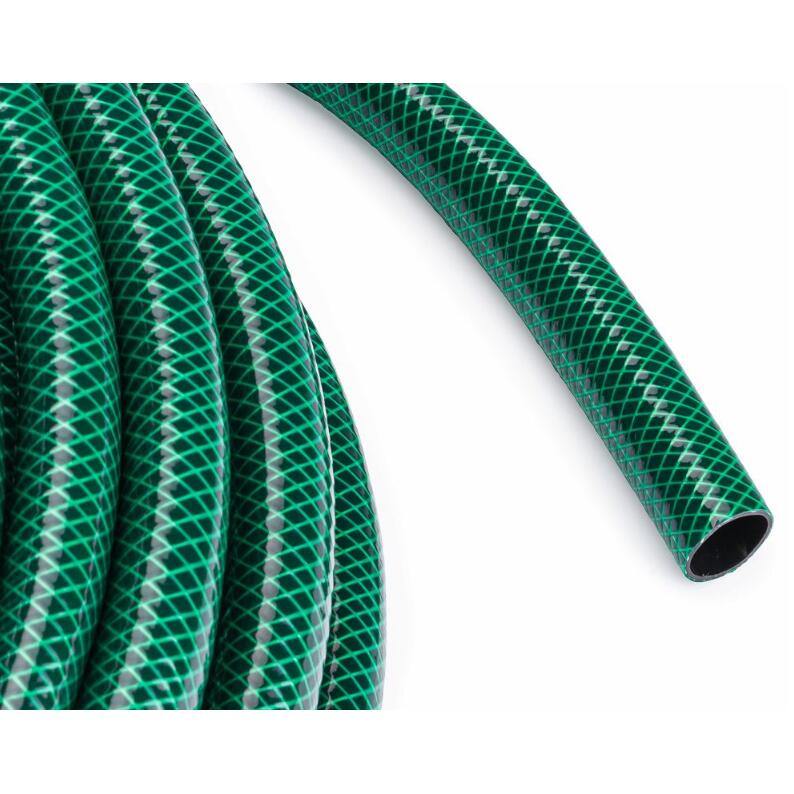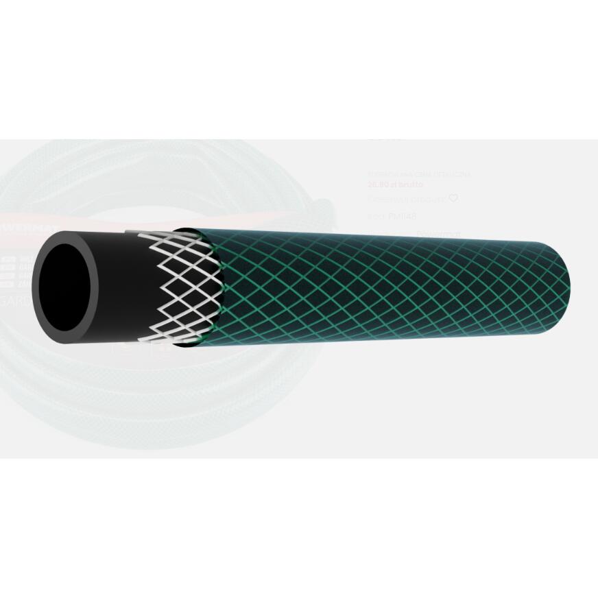 Furtunul este realizat dintr-un material exterior PVC anti-UV de foarte buna calitate, o impletitura transversala din fibra sintetica si un strat exterior flexibil din PVC.