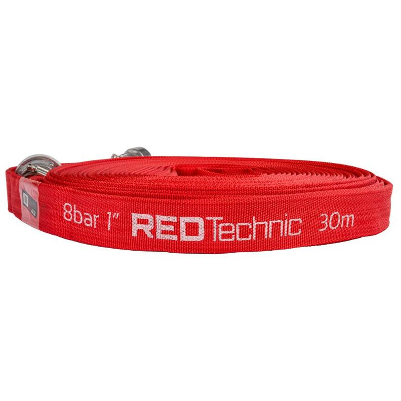 Furtun apa irigatii 1"30 metri, tip pompieri 8 bari, cu cuple, Red Technic