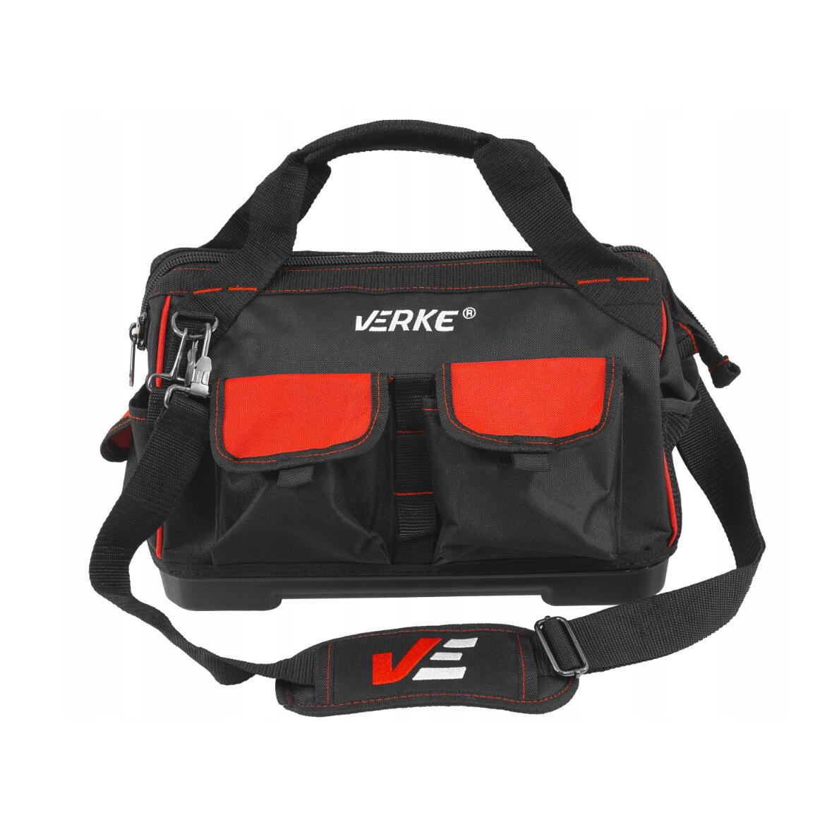 Geanta de scule Verke este ideală pentru depozitarea și transportul uneltelor și accesoriilor pe șantier sau în garaj sau atelier. Se caracterizează prin dimensiuni reduse și o structură rigidă, ceea ce o face o geantă foarte la îndemână și practică. Are buzunare interne și externe pentru depozitarea șurubelnițelor, cleștilor și a altor unelte mici. Un compartiment mare cu fermoar oferă acces convenabil la unelte. Cusăturile și fermoarul principal sunt realizate într-o versiune întărită, adaptată la sarcini grele. Material poliester 600D.