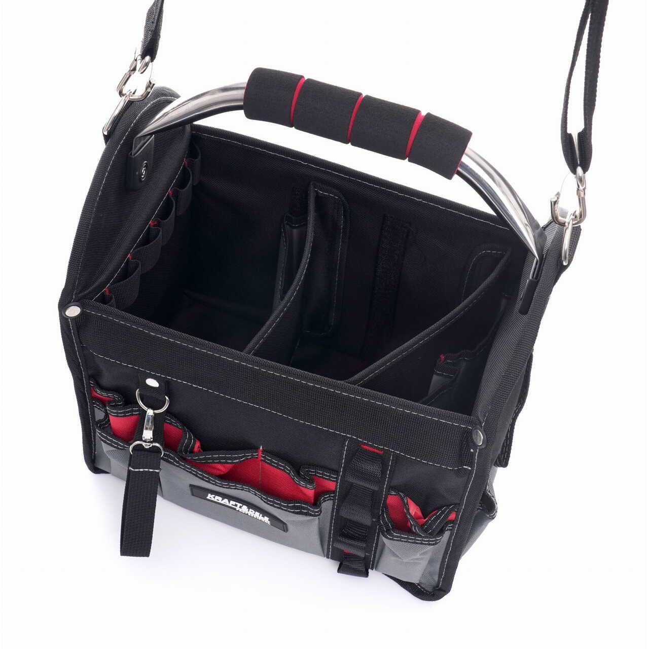 Geanta de scule deschisă este un organizator ideal pentru scule, potrivit pentru toți instalatorii (electricieni, instalatori, faianțări etc.).