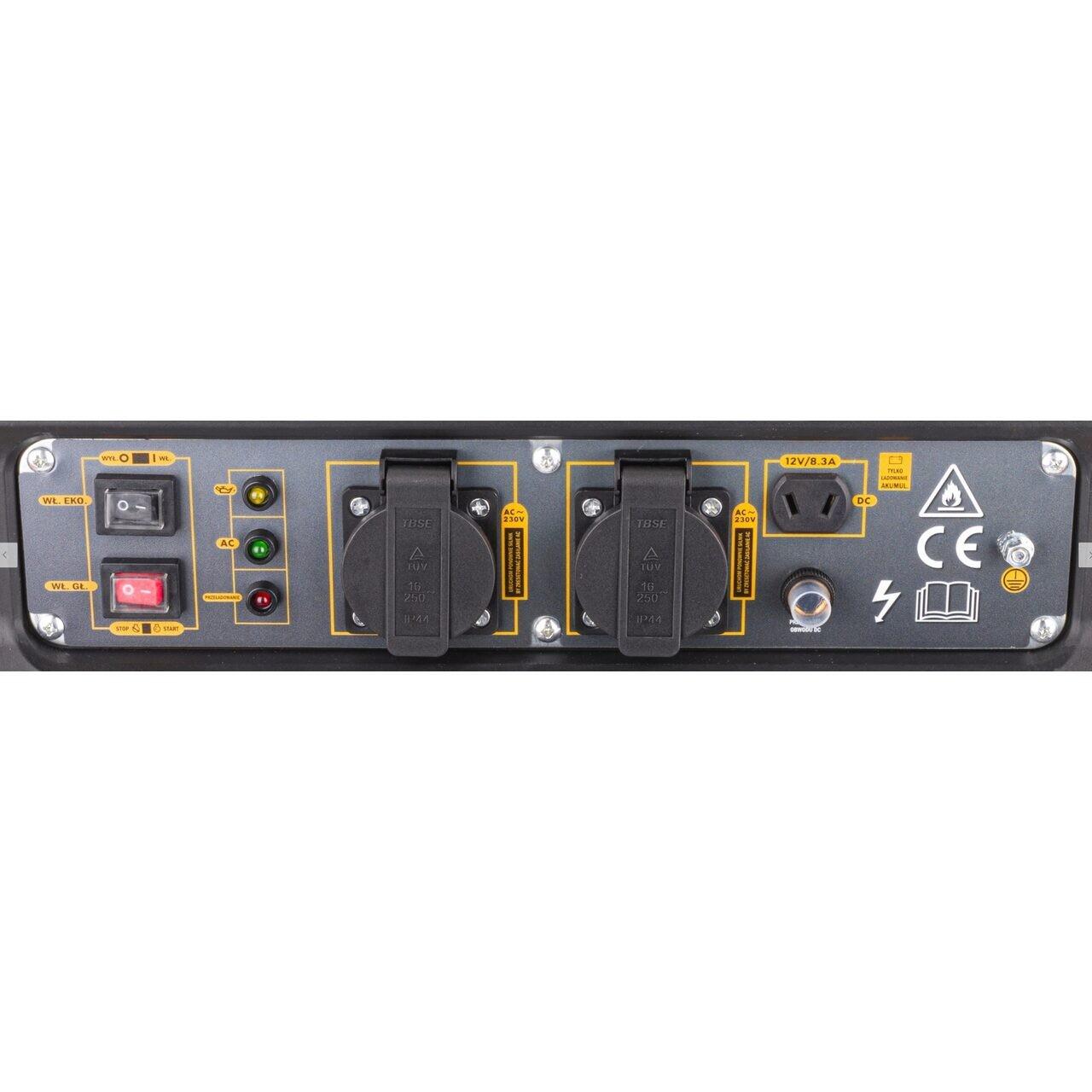 Generatorul produce energie electrică cu o tensiune de 230V (2 prize) și curent continuu cu o tensiune de 12V.