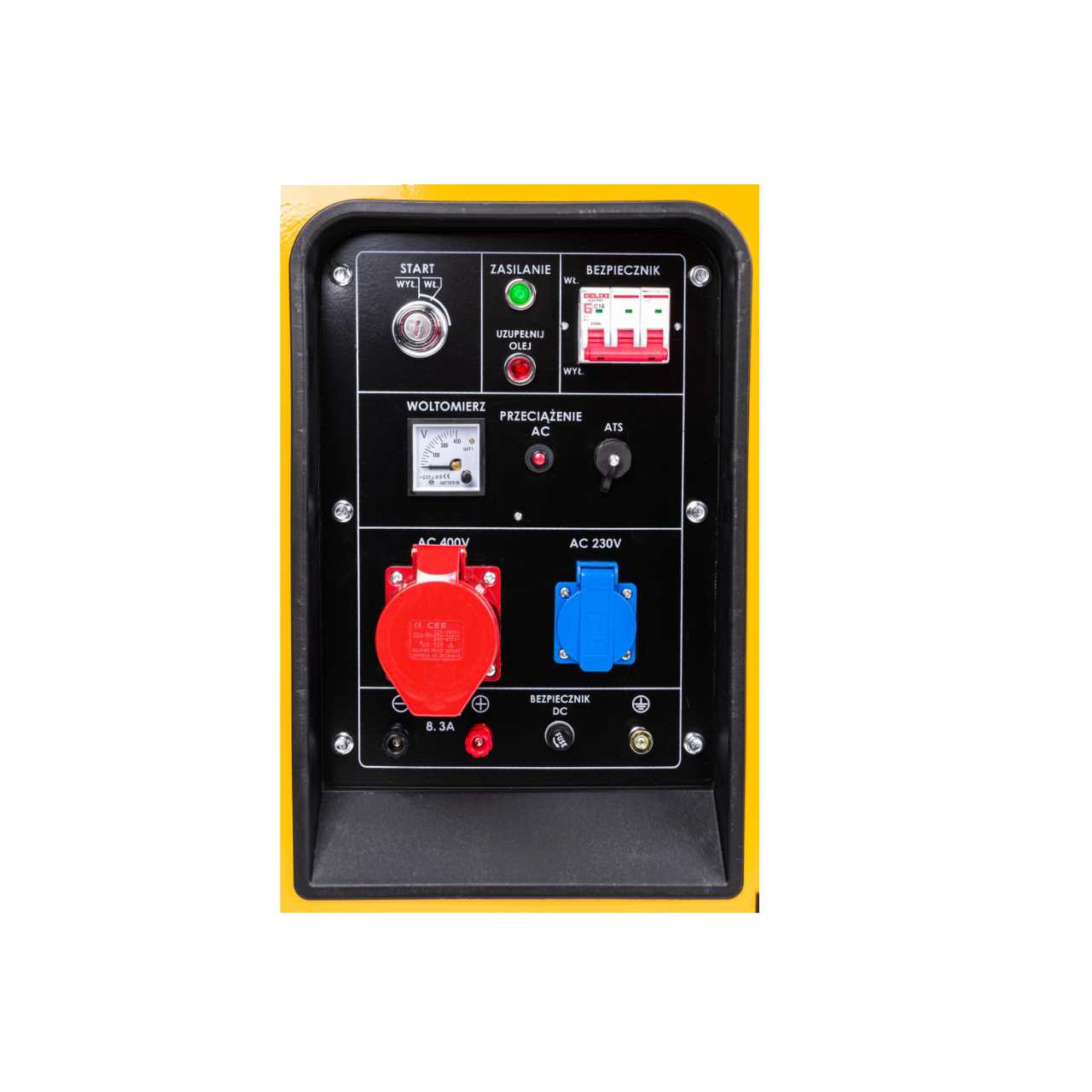 Generatorul produce curent alternativ cu o tensiune de 230V (1 priza), 400V (1 priza) si 12V curent continuu (1 priza). Solutia perfecta pentru o intrerupere de curent in camp. Echipat cu voltmetru si sigurante. Unitatea are un senzor de nivel de ulei care va opri automat motorul daca nivelul acestuia este prea scazut. Pornirea unitatii - electrica (cu cheie). Unitatea este utilizata in mestesuguri, constructii pe terenuri si gradini pentru lucrul cu scule electrice, pompe, iluminat.