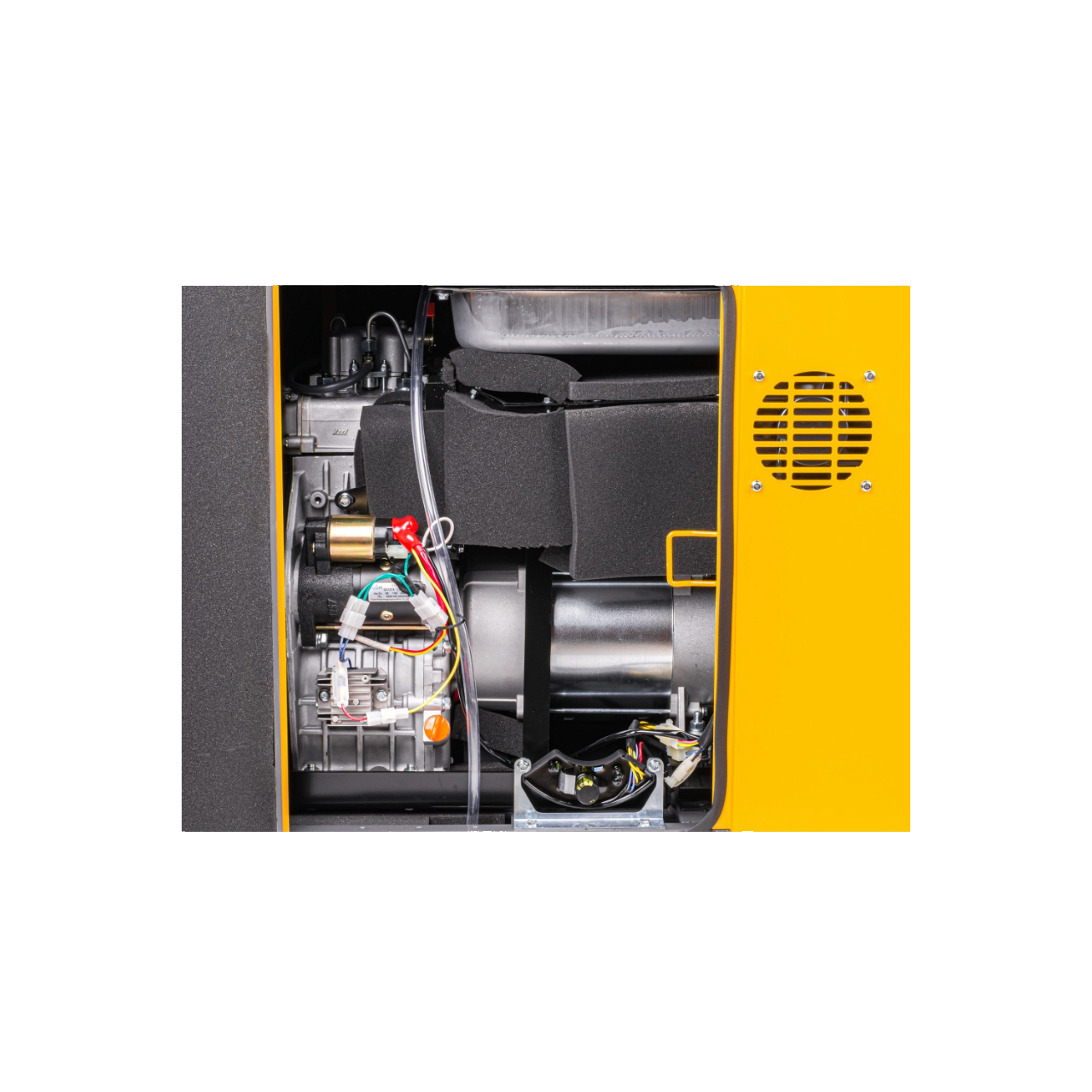 Unitatea este alimentata de un motor diesel OHV monocilindru fiabil, in patru timpi (198FD), cu o putere foarte mare de 15 km. Datorita puterii mari a motorului, generatorul va mentine viteza chiar si la sarcina maxima.