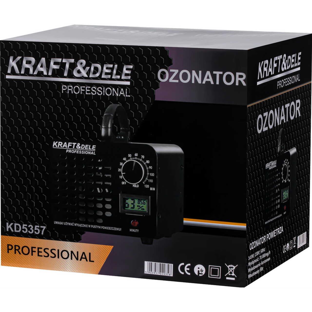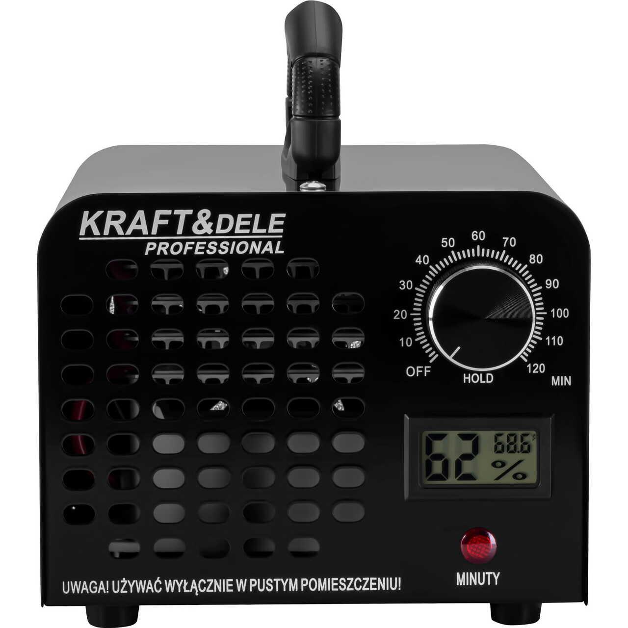 Este un ozonator de aer puternic de la KRAFT&DELE, conceput pentru dezinfecția eficientă a spațiilor interioare, a zonelor de service și a vehiculelor.