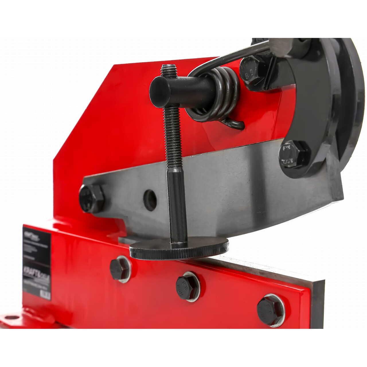KD1589 este o ghilotină manuală profesională de la KRAFT&DELE, concepută pentru tăierea precisă a tablei de oțel si barelor. Construcția sa robustă și stabilă asigură o durabilitate ridicată, în timp ce mecanismul său ergonomic permite o forță maximă de tăiere cu un efort minim din partea utilizatorului.