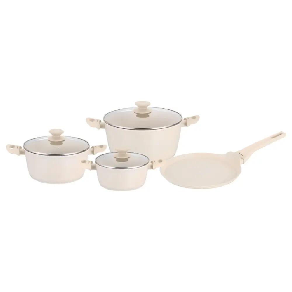 Setul într-o culoare bej modernă arată excepțional de elegant atât în bucătăriile de acasă, cât și în unitățile mici de catering.