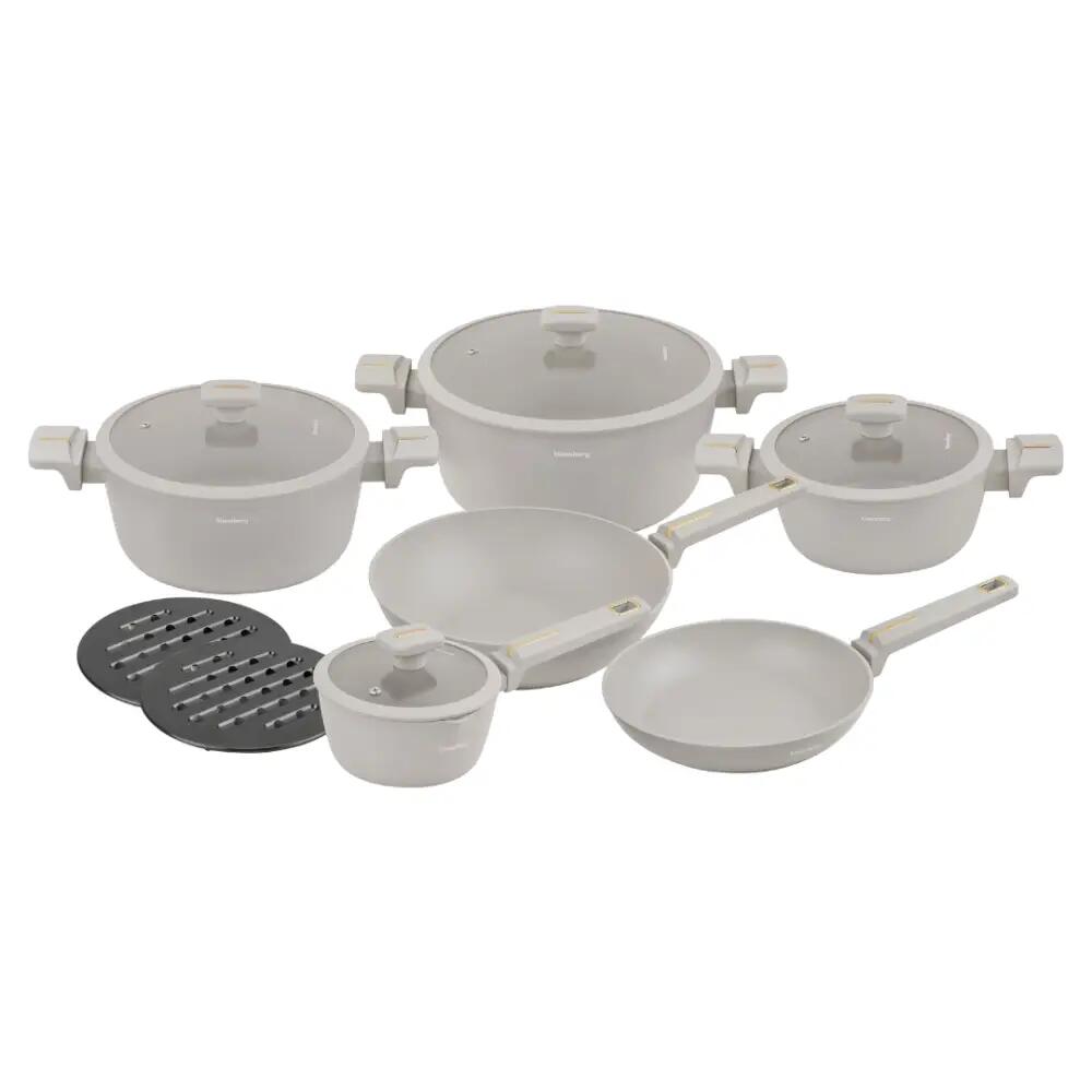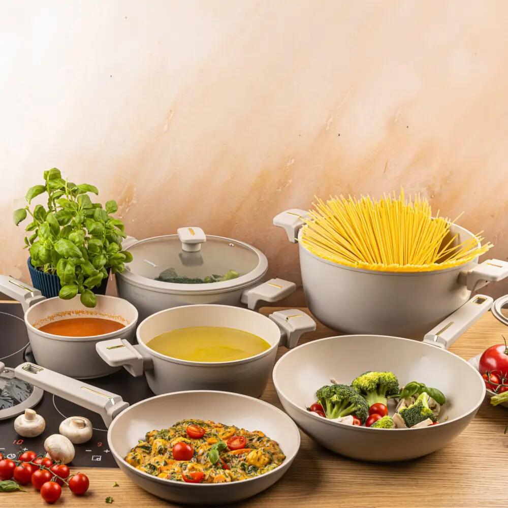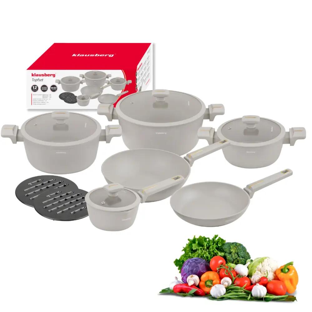 Set oale cu capac, din aluminiu turnat cu strat antiaderent, bej 12 piese, Klausberg