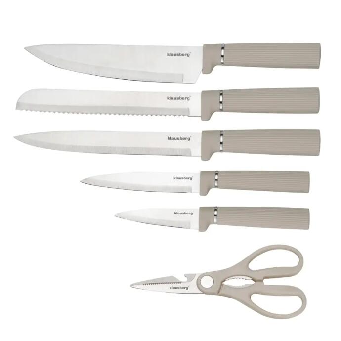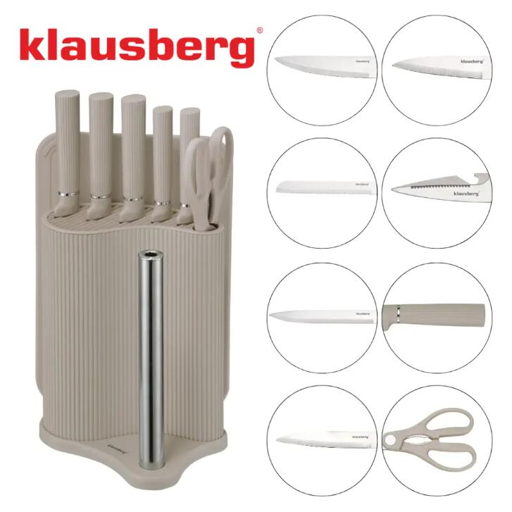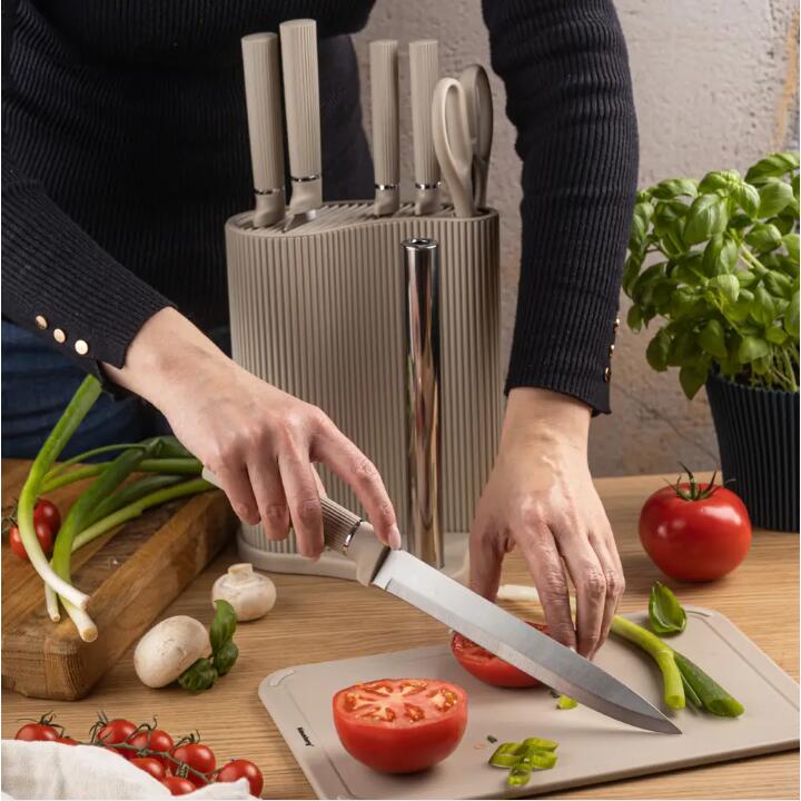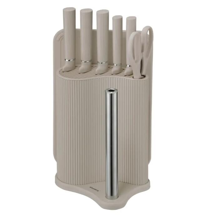 Set de cutite 8 piese, cu tocator si suport pentru prosoape, bej, Klausberg