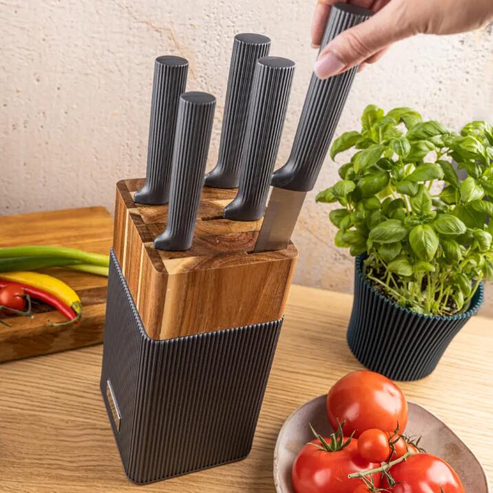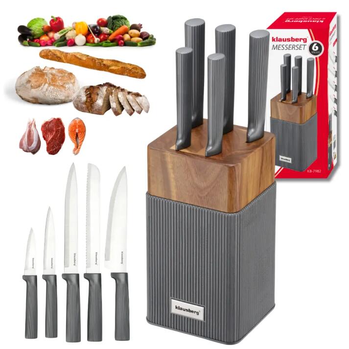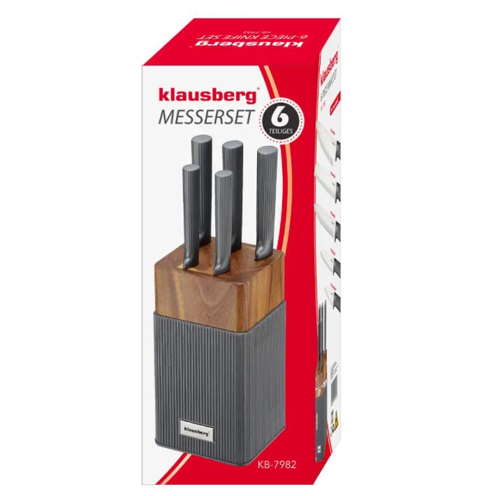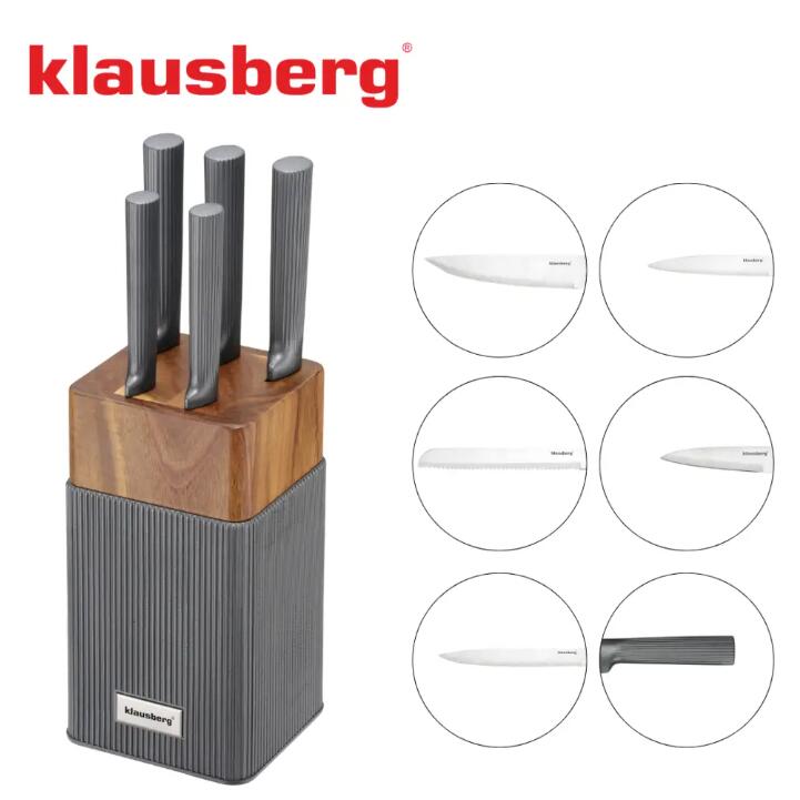 Set de cutite 6 piese, cu bloc de salcam, otel inoxidabil, Klausberg
