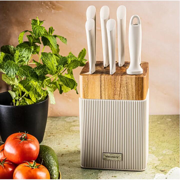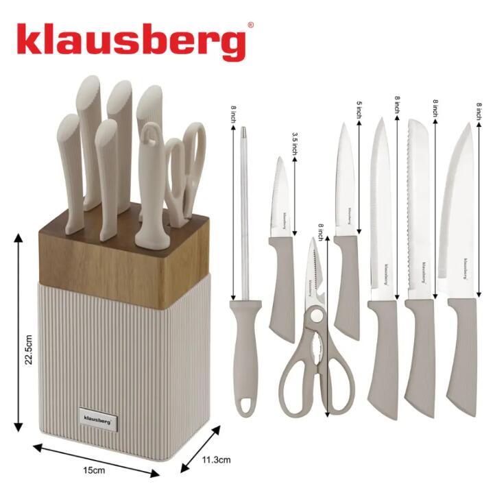 Set de cutite 8 piese, cu bloc de salcam, otel inoxidabil, Klausberg