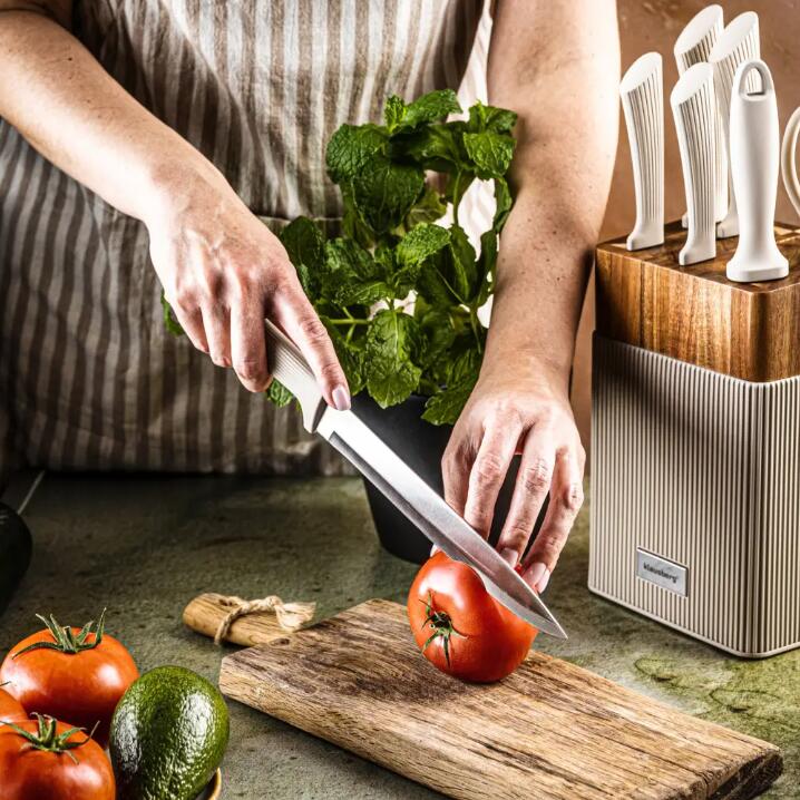 Număr de articole: 8 (5 cuțite + foarfece + tijă + bloc)