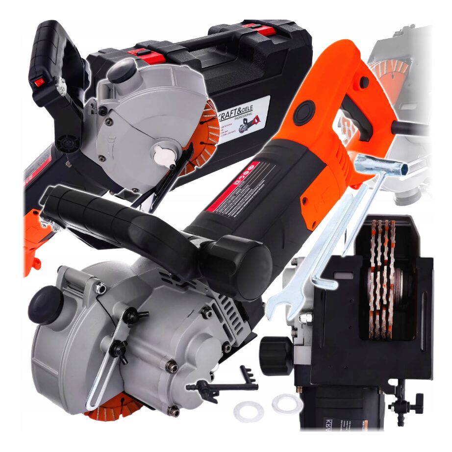 Este o masina electrică puternică pentru pereți de la KRAFT&DELE, concepută pentru tăieri precise în beton, tencuială, cărămidă și cărămidă cu goluri.