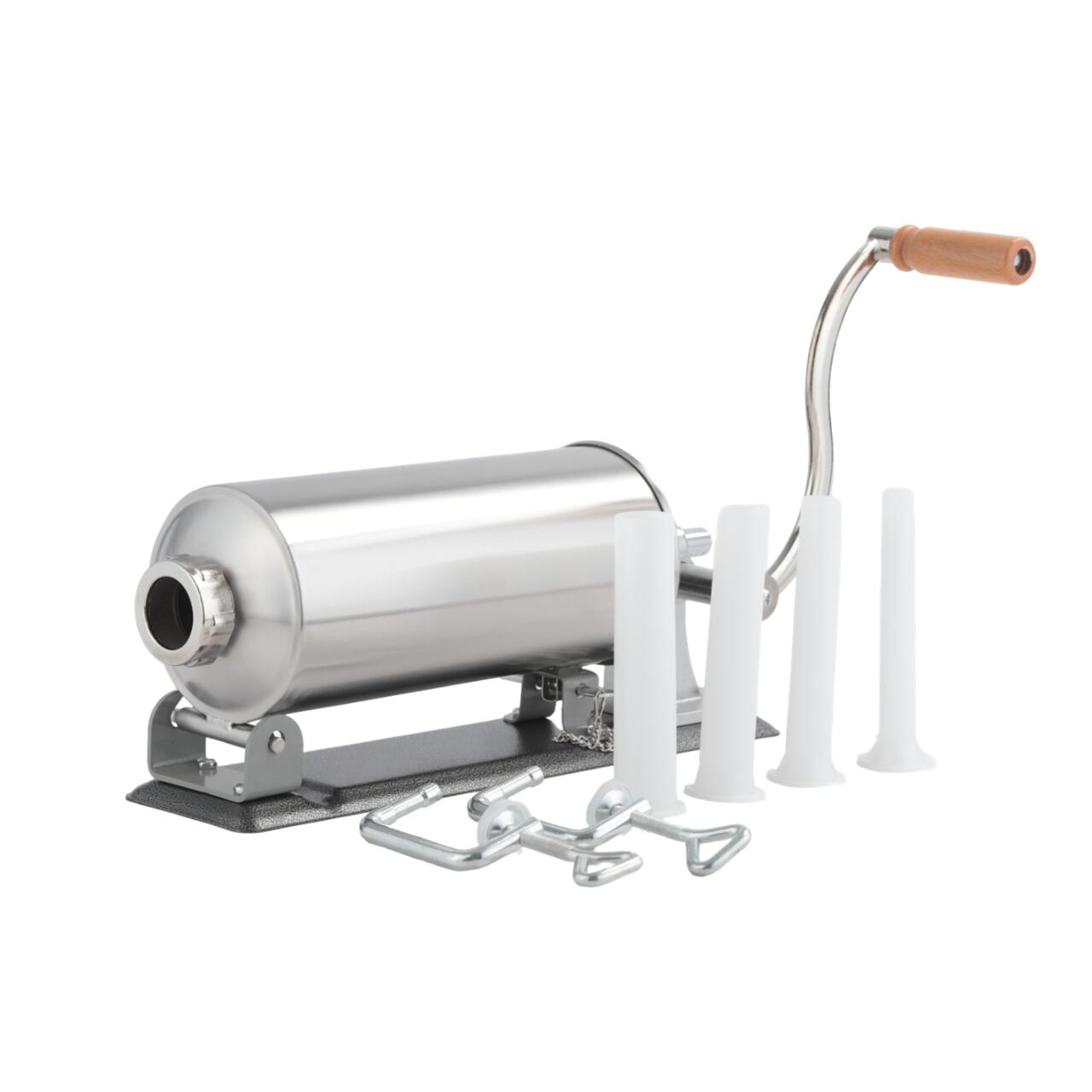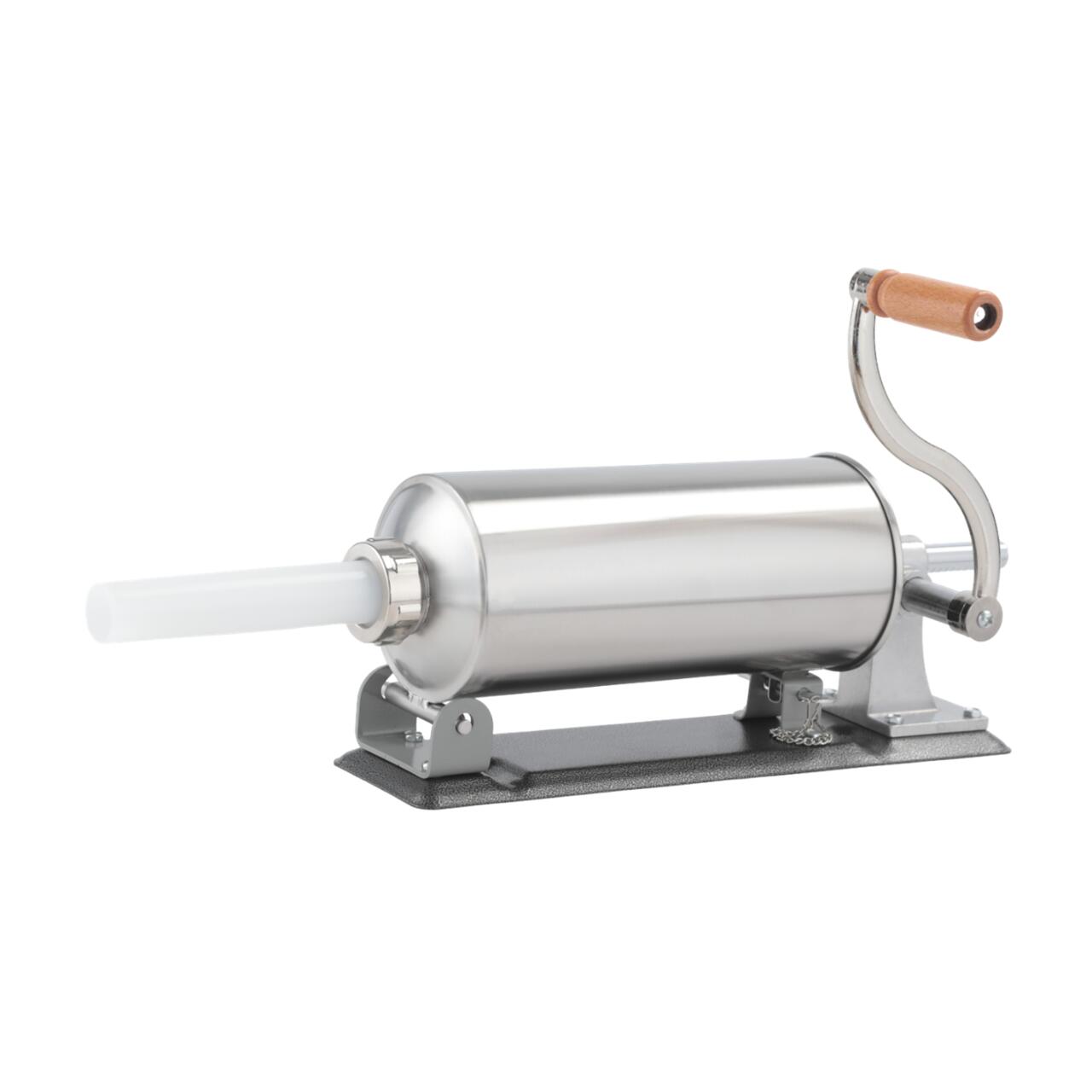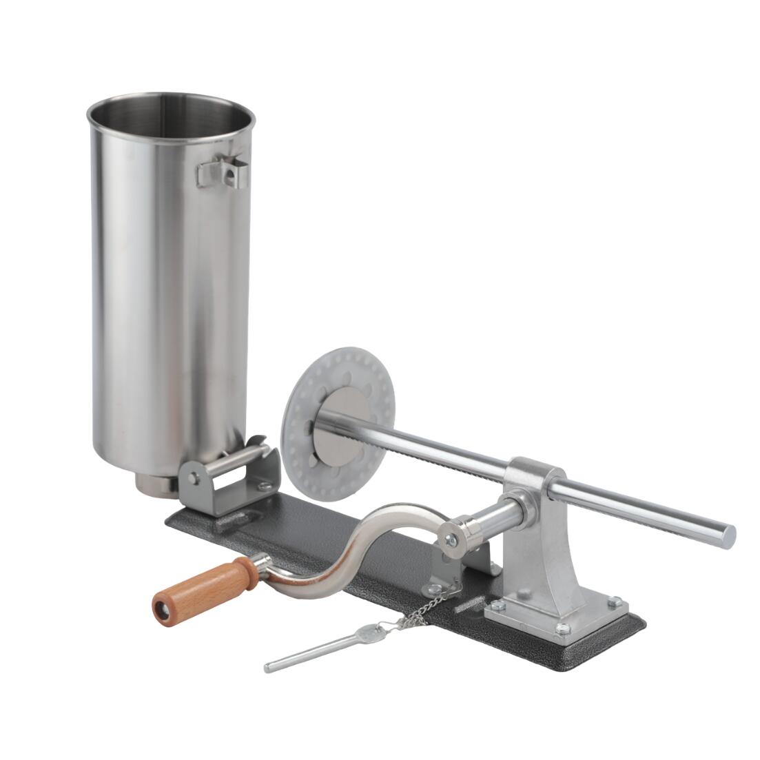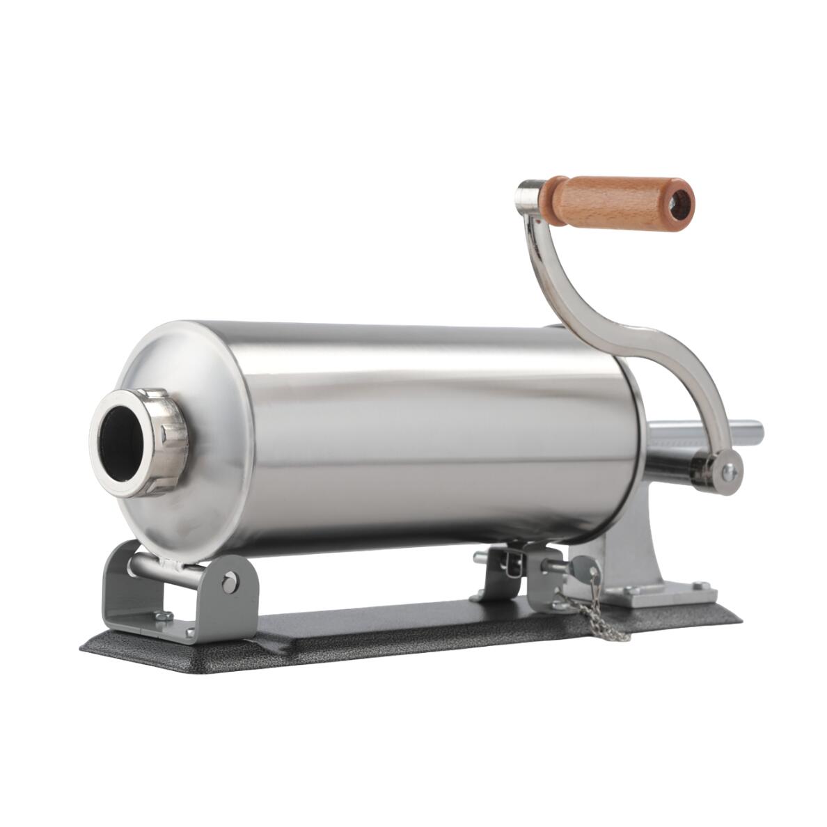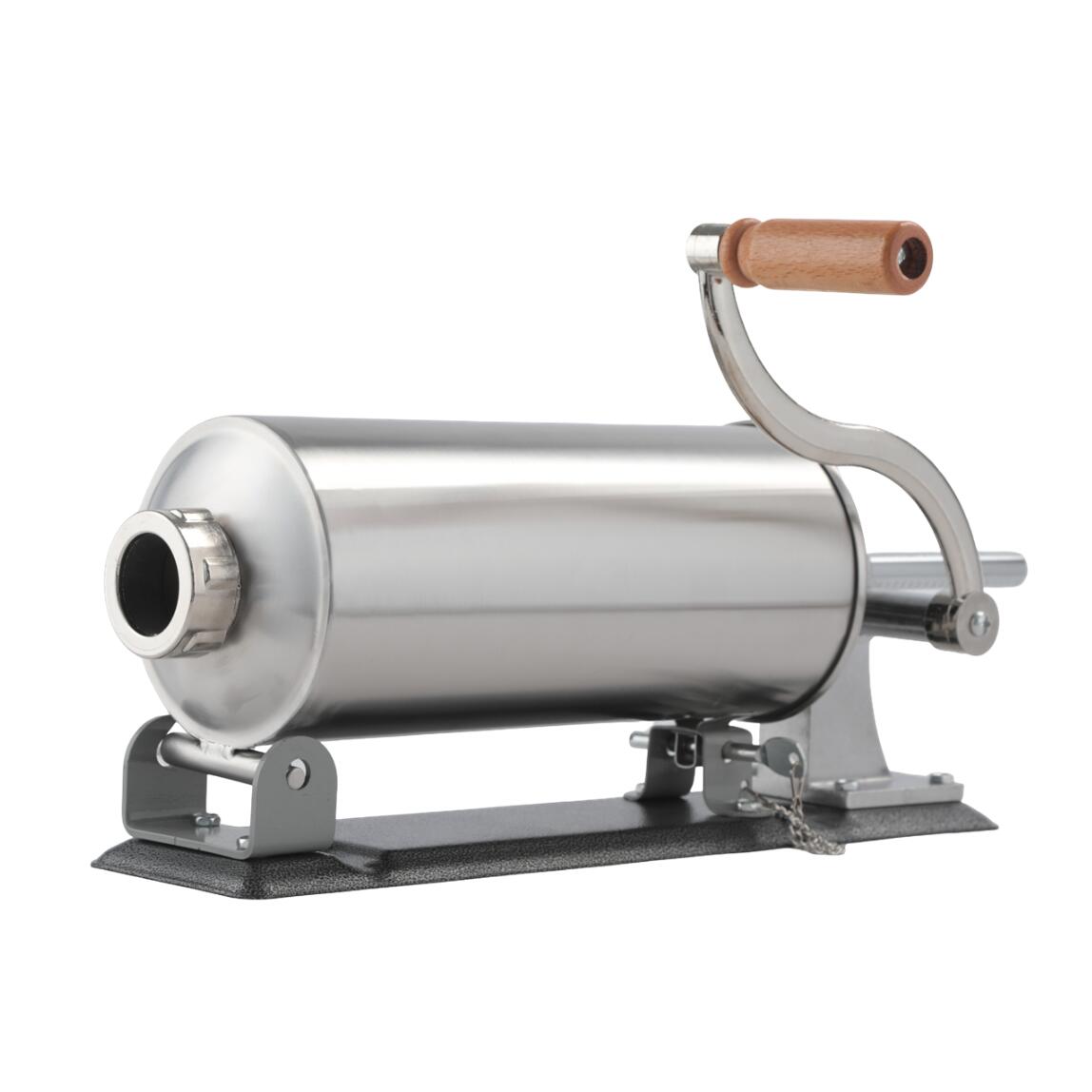 Mașina de umplut cârnați KD4130 de la Kraft & Dele este un aparat de bucătărie practic care vă permite să preparați rapid și ușor cârnați de casă. Construcția sa robustă din oțel inoxidabil și aliaj de aluminiu asigură durabilitate, rezistență la coroziune și fiabilitate pe termen lung. Datorită manivelei manuale și montării stabile pe masă, dispozitivul este ușor și sigur de utilizat. Designul pliabil facilitează curățarea și asigură ușurința în utilizare.